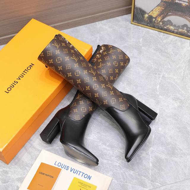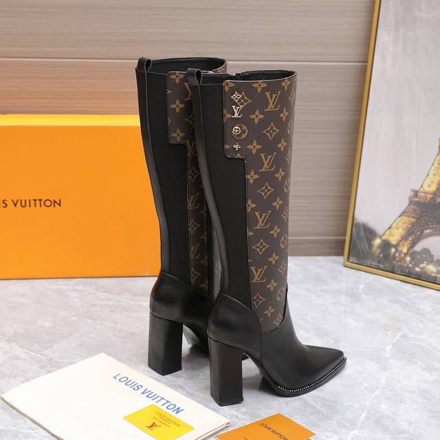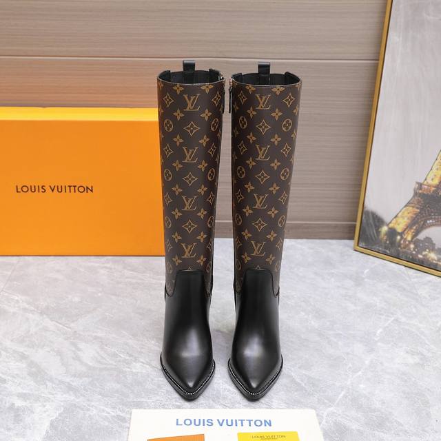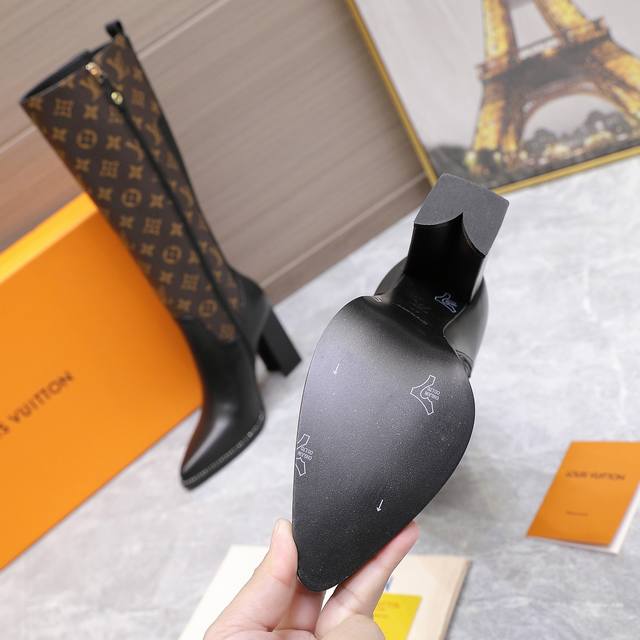代购级!全配套包装 Loui& Vuitto& 本款Silhouette 小V跟尖头骑士靴,Lv新元素子母扣装饰、工艺复杂、V跟+大底边镶钻设计、尽显高贵气质、
