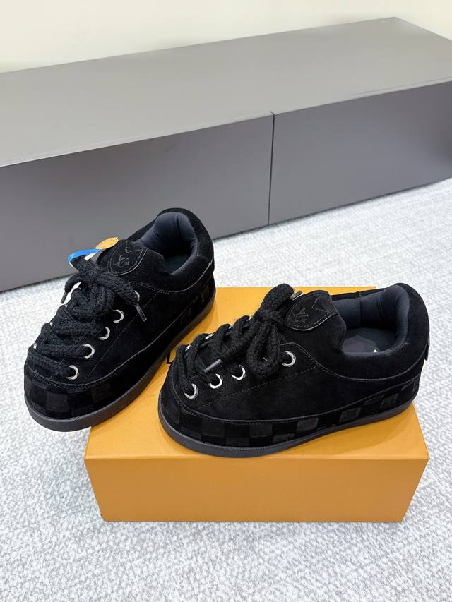 代购级别 男+10 DDD Lv|路易威登2025S 莞产 Lv Yeti 胖丁 丑萌便鞋 DDD 以绒面牛皮革为基底,局部压印Nigo重绎的Lv Damier图案,巧妙呼应中国入室脱鞋传统,“小脚”美学融入中国式街头基因。掌印橡胶外底暗藏Lv字母与Monogram花卉,意大利制造的细腻工艺,在舒适便鞋型里尽显品牌底蕴。 预订模式更添独特格调,是传统与潮流, DDD 面料:原版牛皮 DDD 内里:原版网面 DDD 鞋底:原版大底 DDD 尺码:35-45 女40.41 男38.45 订 DDD