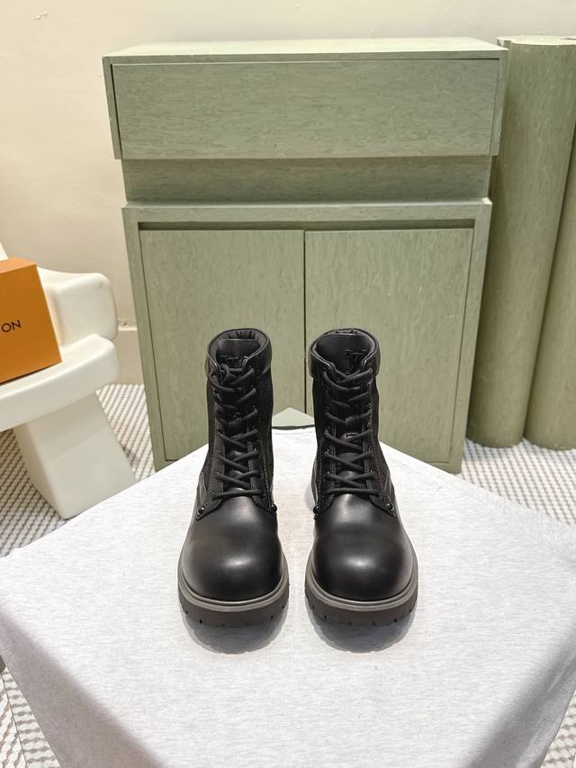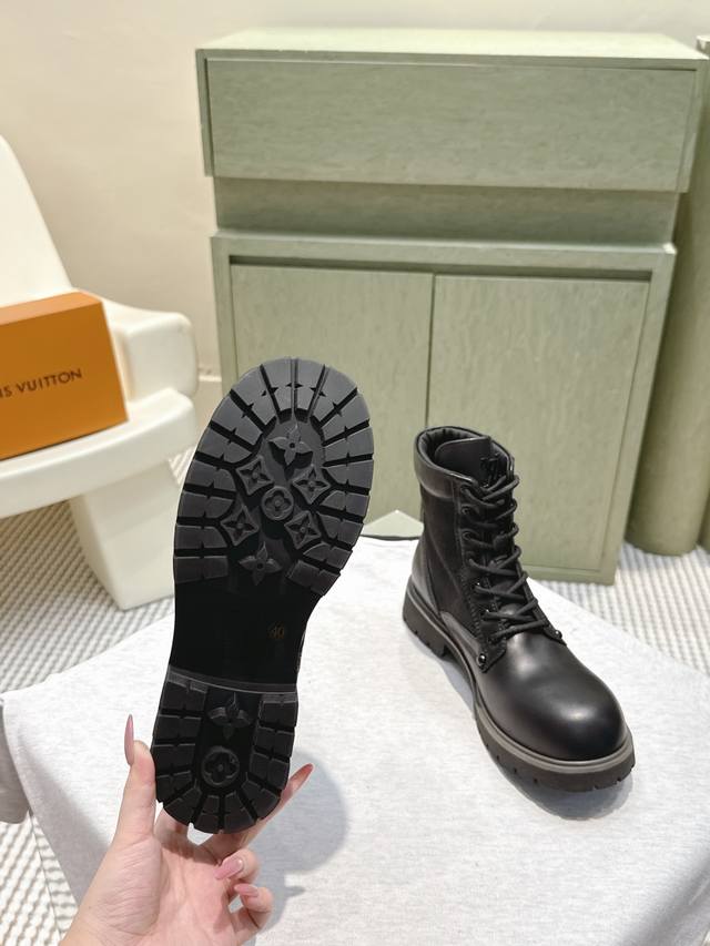 代购级 DDD Louis Vuiteeon 路易威登系带 最新款路易威登新款马丁靴 DDD 这款松糕厚底系列今年非常爆,穿上**效果,和时尚的引领绝对的Yyds! DDD 小牛皮Lv Remix Derby从经典登山靴中汲取灵感,重新构想其比例,打造出时尚前卫的轮廓。 DDD 鞋面结合了厚鞋带和刻有字母花的钩子,细节取自路易威登皮革制品,特别是字母帆布钥匙铃和黄色缝线的天然皮革后标签。这款鞋采用了厚实的橡胶外底。 DDD 鞋面:小牛皮 漆皮 DDD 内里垫脚:羊皮 DDD 鞋底:原版开模Tpu橡胶大底
