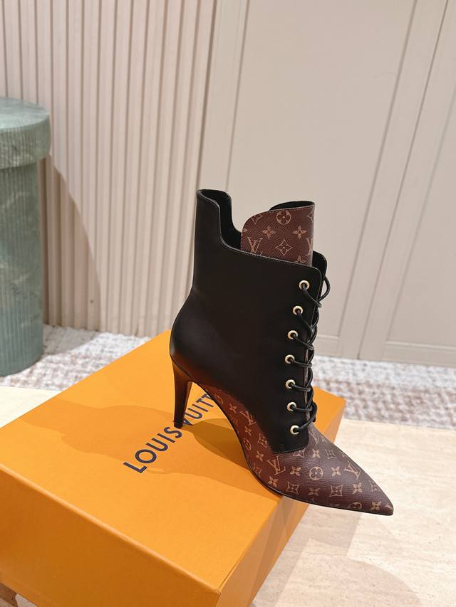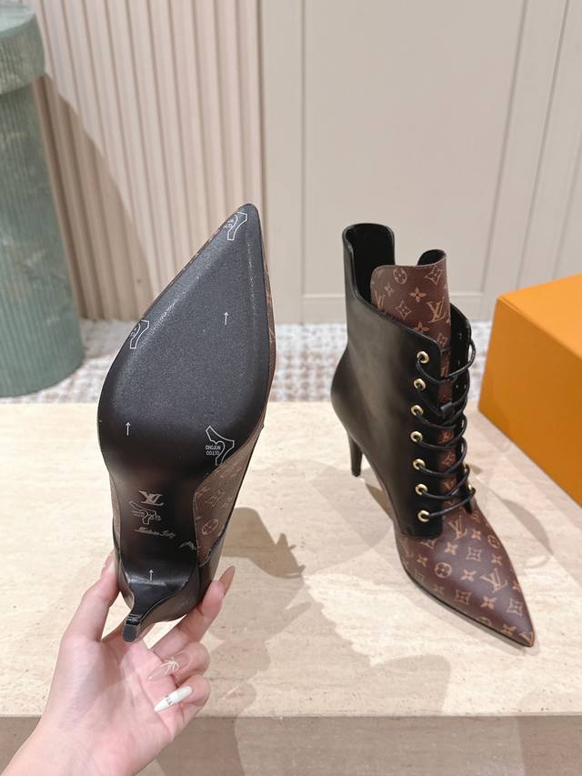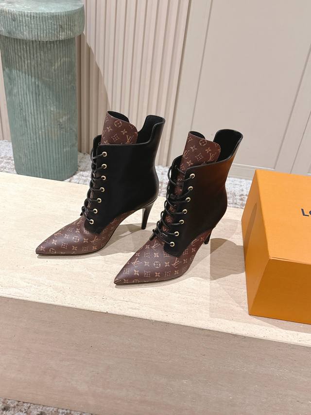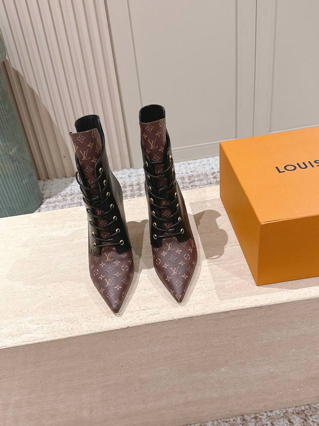 / 代购级: Lv驴牌 25Ss 新款秋冬高跟马丁靴短靴 楦型百搭瘦脚Yyds.造型立体饱满,气质满满 上脚舒适 非常复古风、气场十足,加原版老花设计风格非常经典