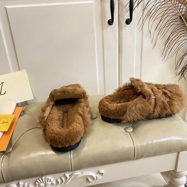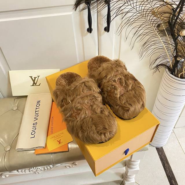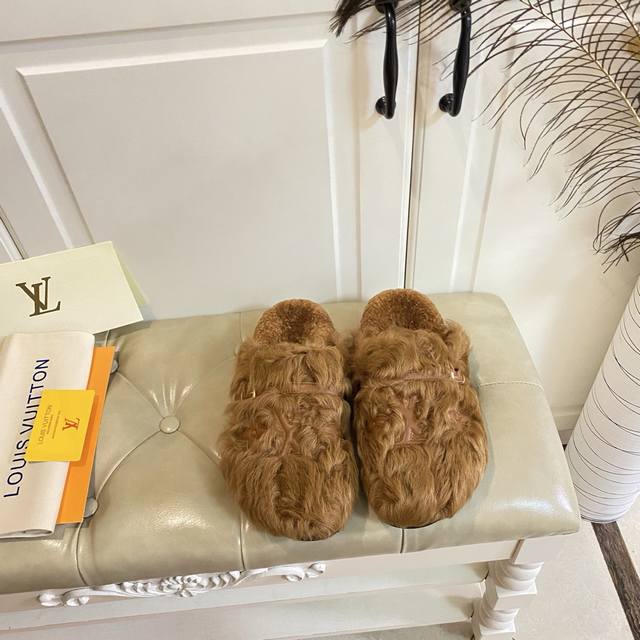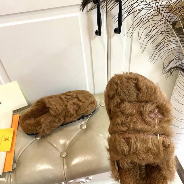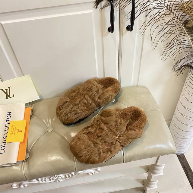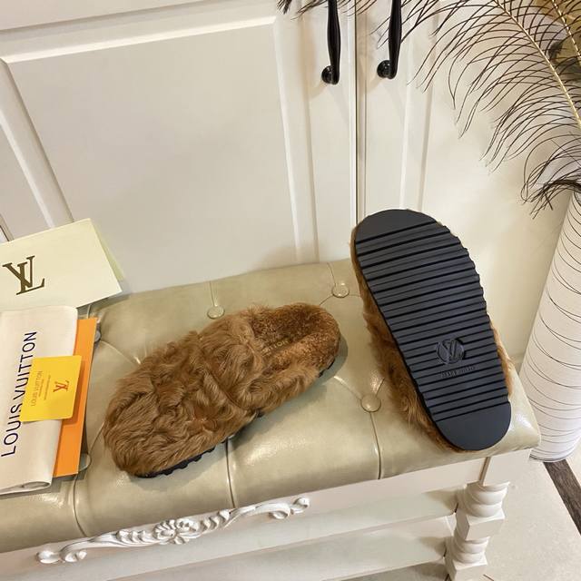 出厂价P ,路易威*Lv新款羊卷毛拖鞋,羊卷毛面,羊卷毛垫脚,发泡底,35-39码 40-42码定做不退换