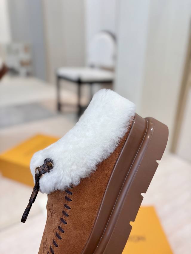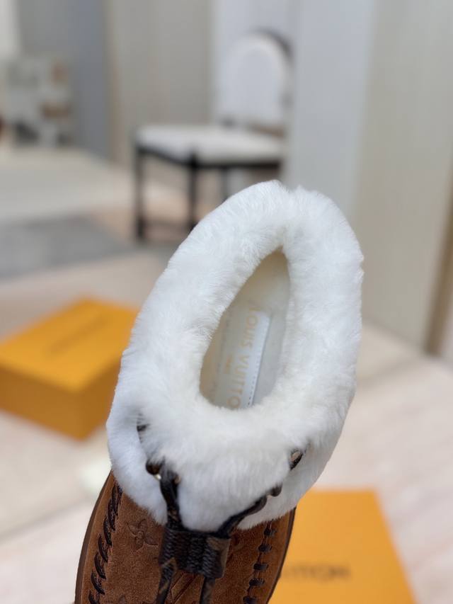 出厂价p 顶级版本 Louis Vuitton 路易威登 25新品滑雪系列 雪地靴 以绒面牛皮革呈现丝绒质感 搭配柔暖羊毛皮内衬 鞋面的 字母缝线和可调节鞋带的