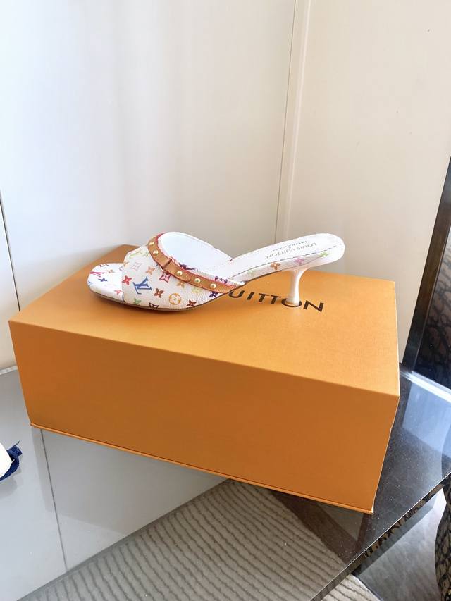 L驴家新品Revival系列 激光冲孔猫跟凉拖鞋 顶级品质 本款 Neo Revival 凉拖取材柔软加衬牛皮革,借穿孔 Monogram...