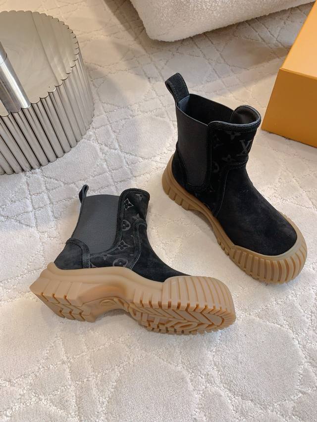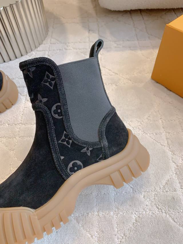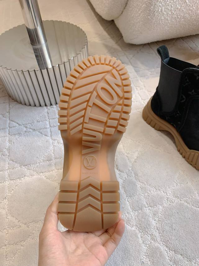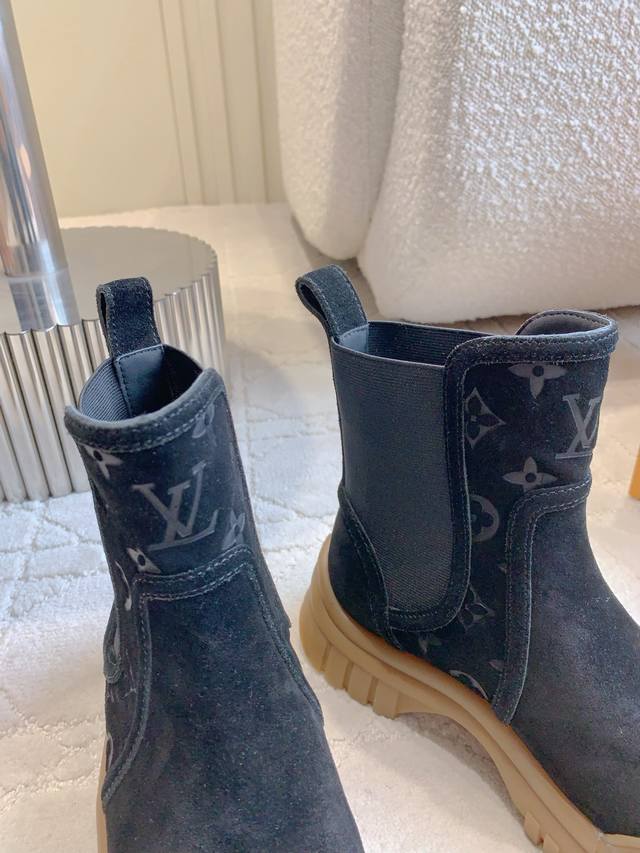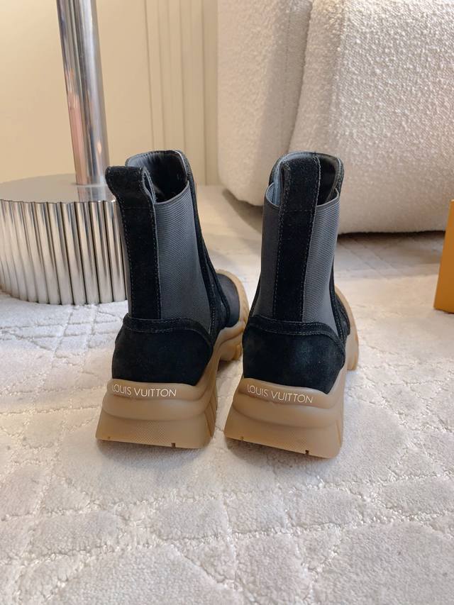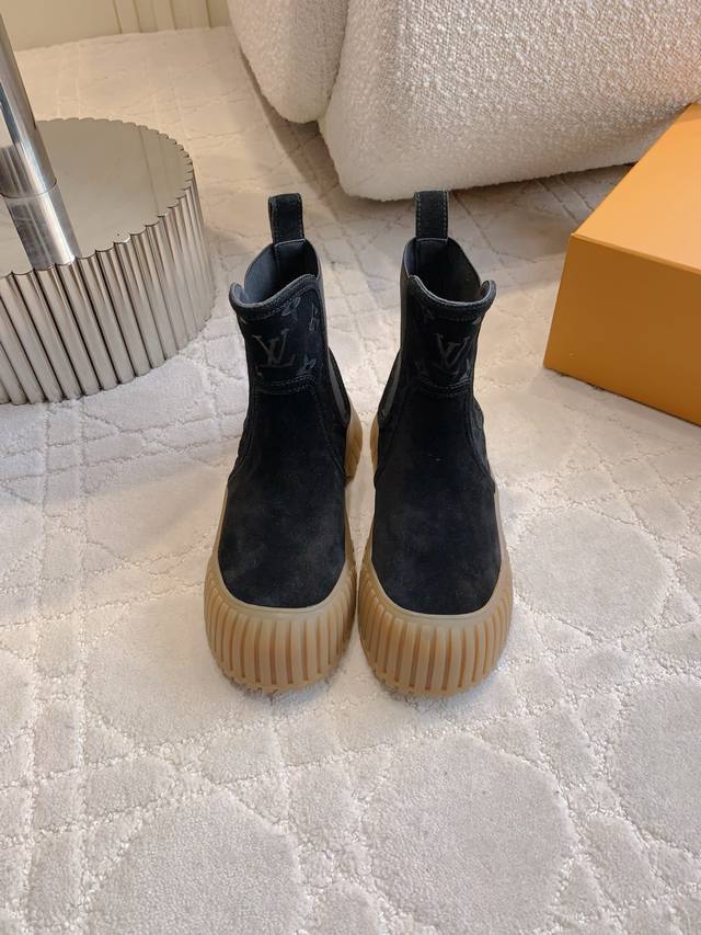 出厂价p Louis Vuitt*经典贝壳头短靴 鞋型酷酷的样子中带点俏皮可爱 很好搭配,脚感好!增高效果也不错呀! 鞋面牛皮 内里羊皮 原版开模大底 尺码35