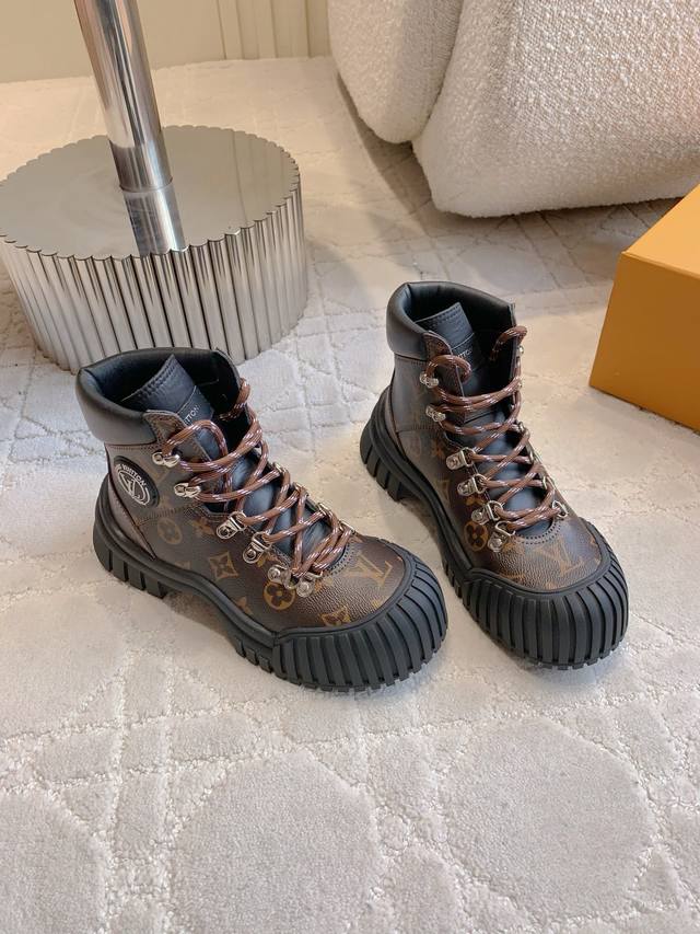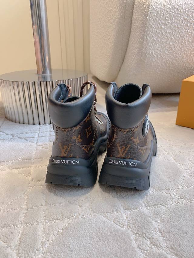 出厂价p DDD Louis Vuitt*经典贝壳头短靴 DDD 鞋型酷酷的样子中带点俏皮可爱 很好搭配,脚感好!增高效果也不错呀! DDD 鞋面牛皮 原版老花面料 内里羊皮 原版开模大底 尺码35-39 40 41定做 DDD