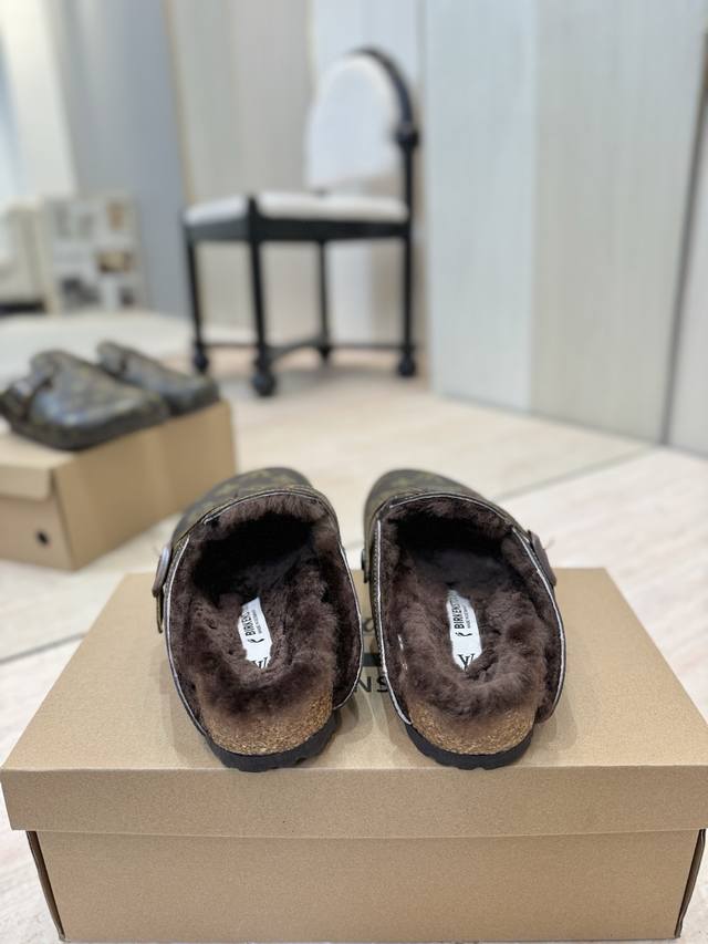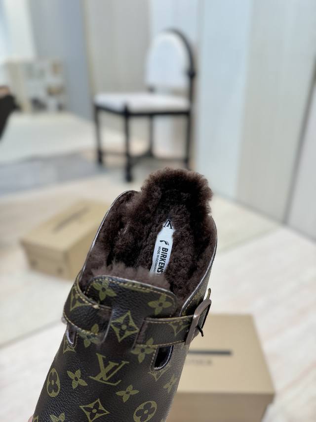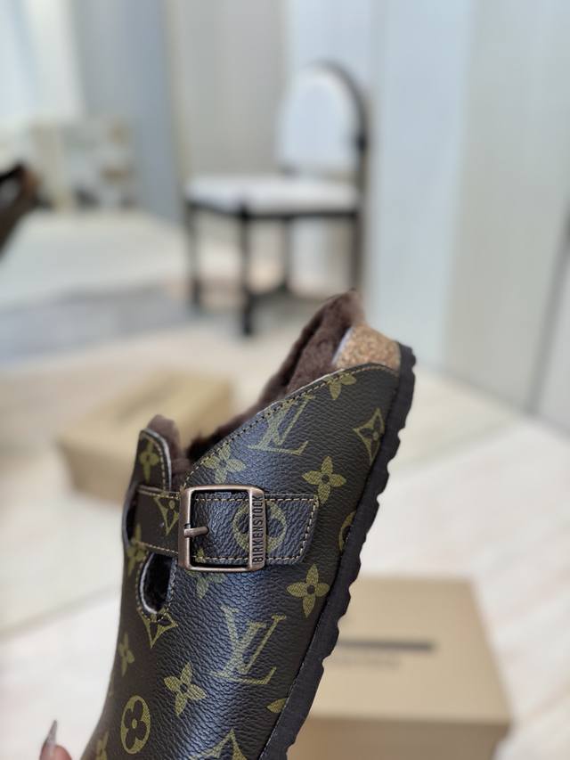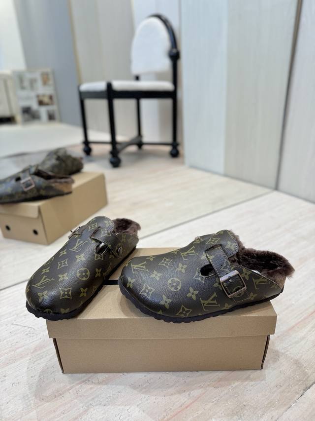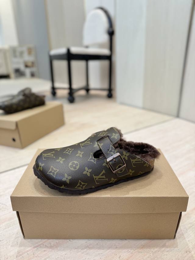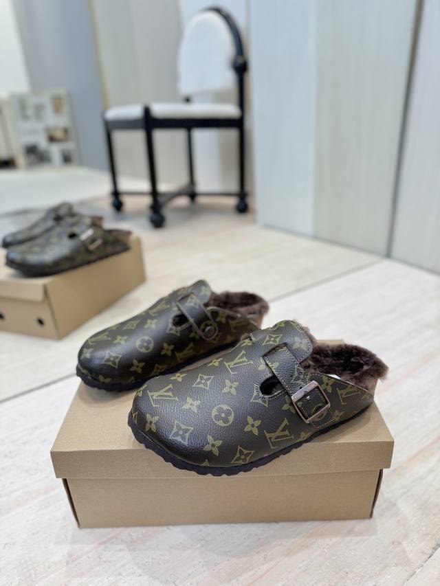出厂价pp:女 男 顶级版本 DDD Louis Vuitton × Birkenstock联名合作款Boston包头软底拖鞋Lv 勃肯穆勒拖鞋 DDD 万年经典勃肯软底拖鞋强势推出,一个品牌就是一个鞋子类型,其构造鉴于人体工学设计,让脚完全解放舒适打造的,所以其脚床的构造完全贴合脚的弧度。 DDD 夏日炎炎,少不了一双轻盈又舒适的拖鞋,这款橡木材质勃肯软木拖鞋穆勒鞋复古休闲沙滩女拖,简直就是救星! DDD 鞋面:定制老花皮牛反绒 DDD 内里:进口皮毛一体 DDD 鞋底:原版开模Eva超轻材料 DDD