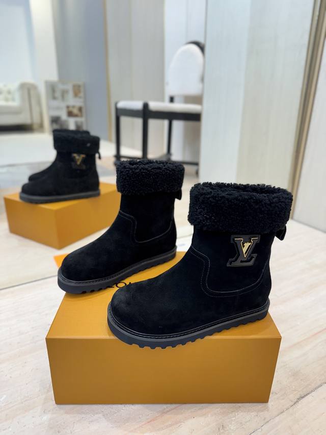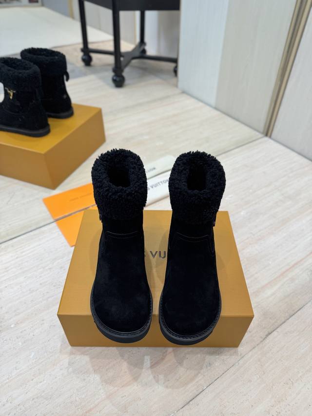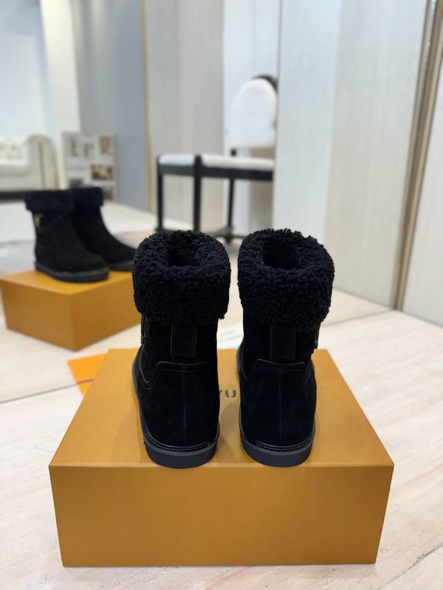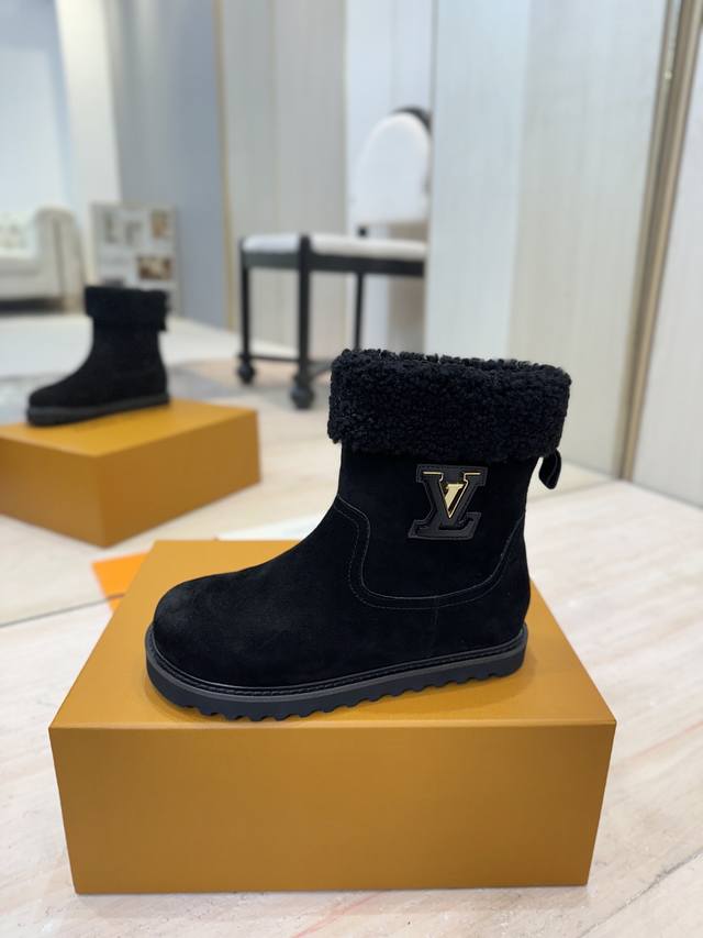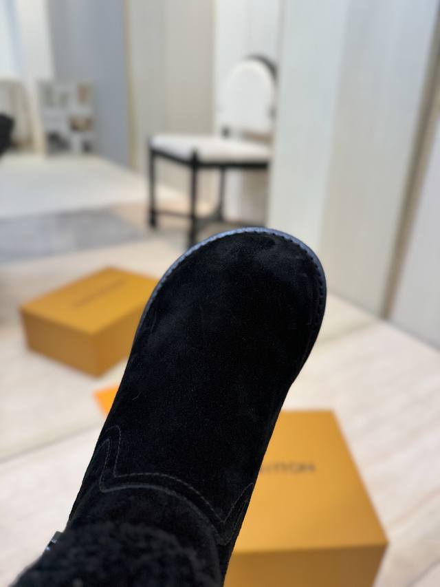 2025 短靴 面料:采用进口高丝光牛猄皮面Lv 专用立体电绣花荟工艺, 搭配皮毛一体羊毛内里。更显时尚,进口高密度橡胶美耐底...