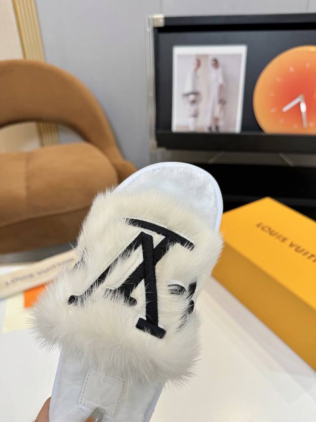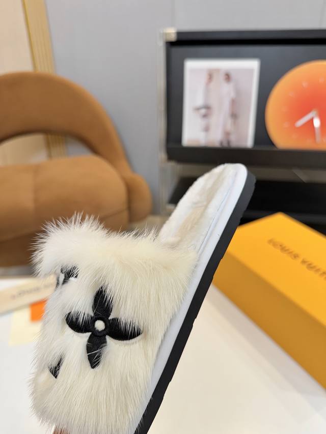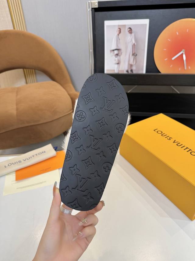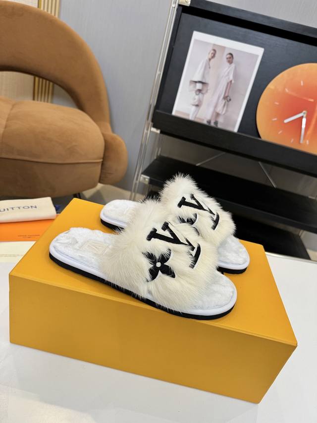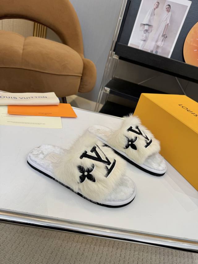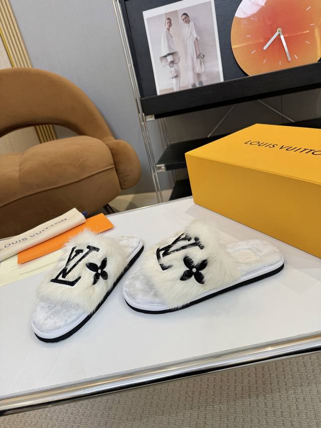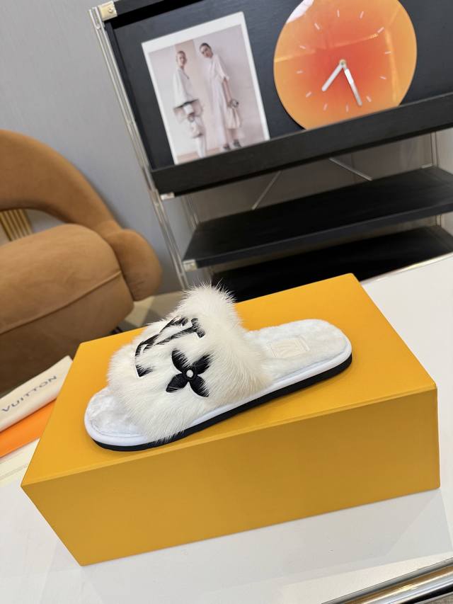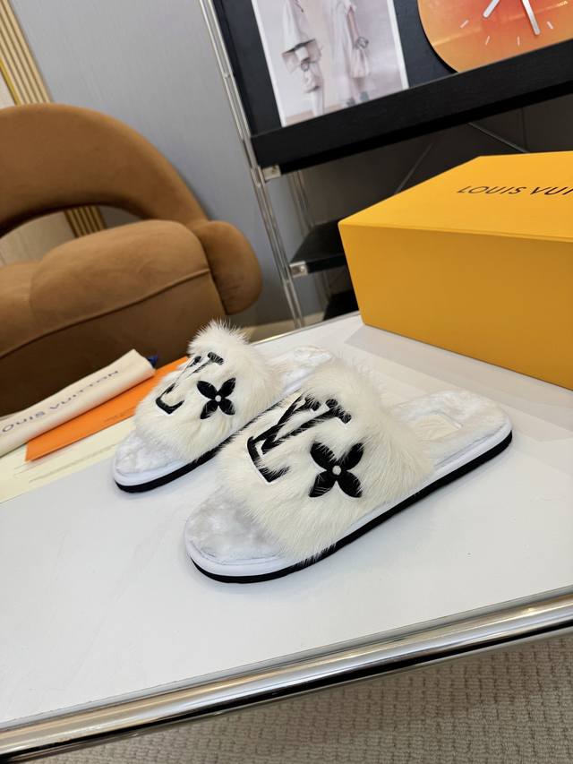 出厂价Pp: 顶级版本 Louis *Uiton 2025S 新款水貂毛居家拖鞋 优雅 简约 奢华 这款拖鞋算是标配啦 简单背后透露出来的是你值得拥有整个简约的