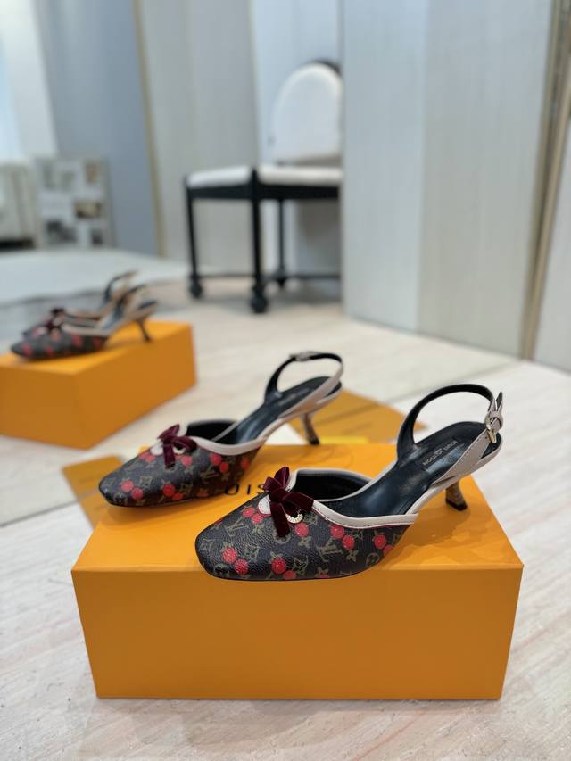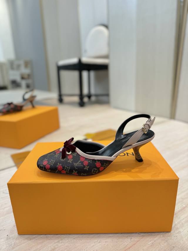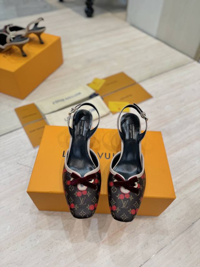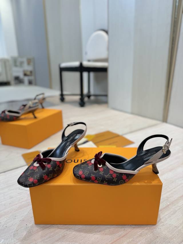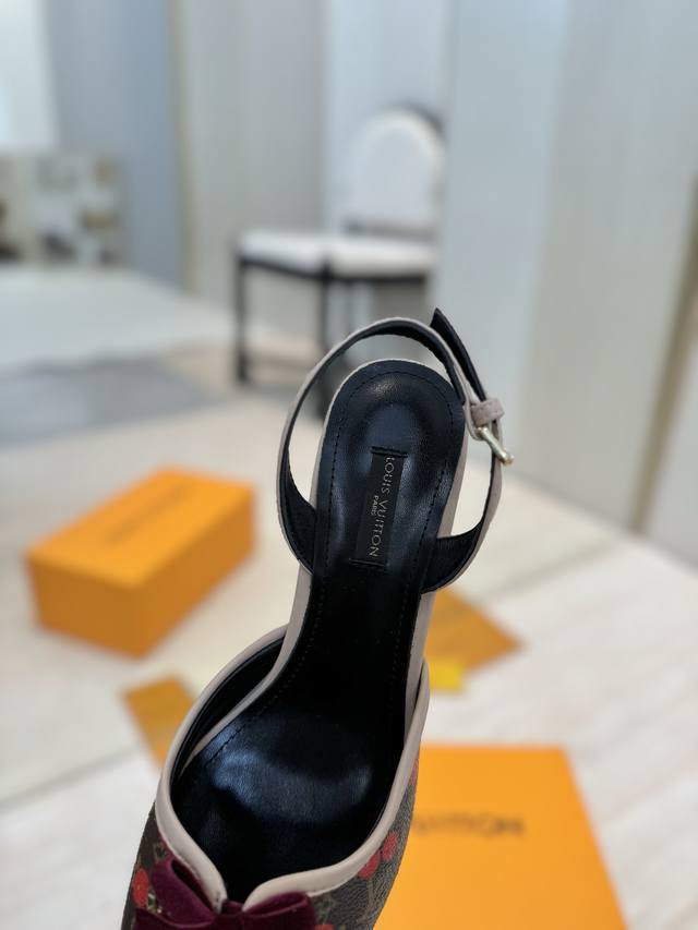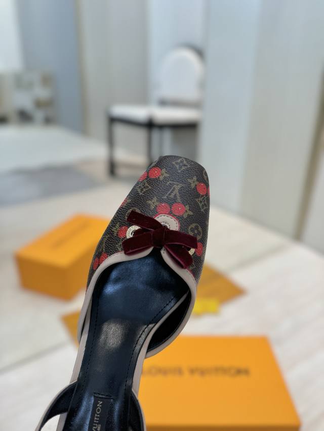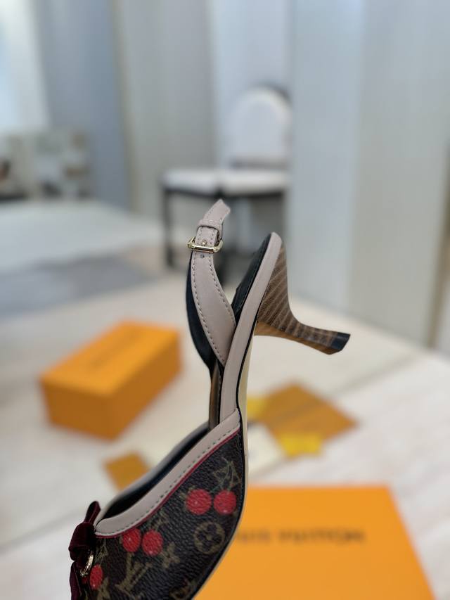 Lv 字母和最新樱桃 Monogram 花卉点缀图案的皮面。