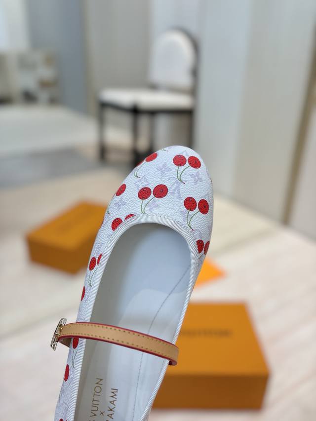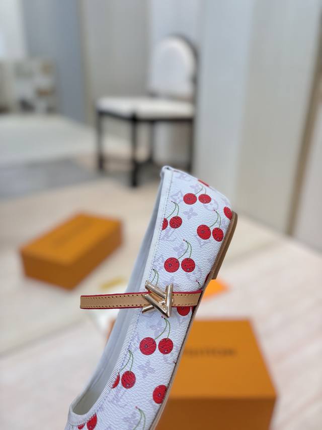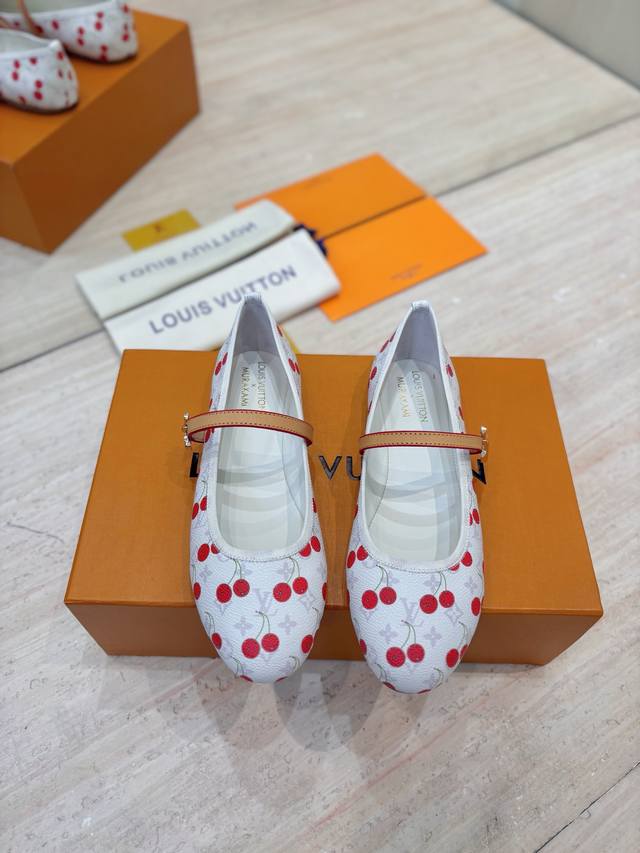 出厂价Pp: 高定樱桃面料 Louis Vuitton 2025夏季樱桃风限定、平底拖鞋 高矮跟鞋 芭蕾舞鞋系列 3D立体樱桃装饰 Lv本季最撩人的小心机!从秀