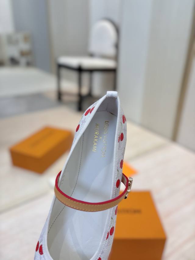 樱桃跟 Lv 25Ss春夏新款 Louis Vuitton × 村上隆樱桃系列 X Tm 6Am 露跟凉鞋 樱花系列 尖头搭扣樱桃跟蝴蝶结拖鞋高跟鞋 鹰嘴小尖头