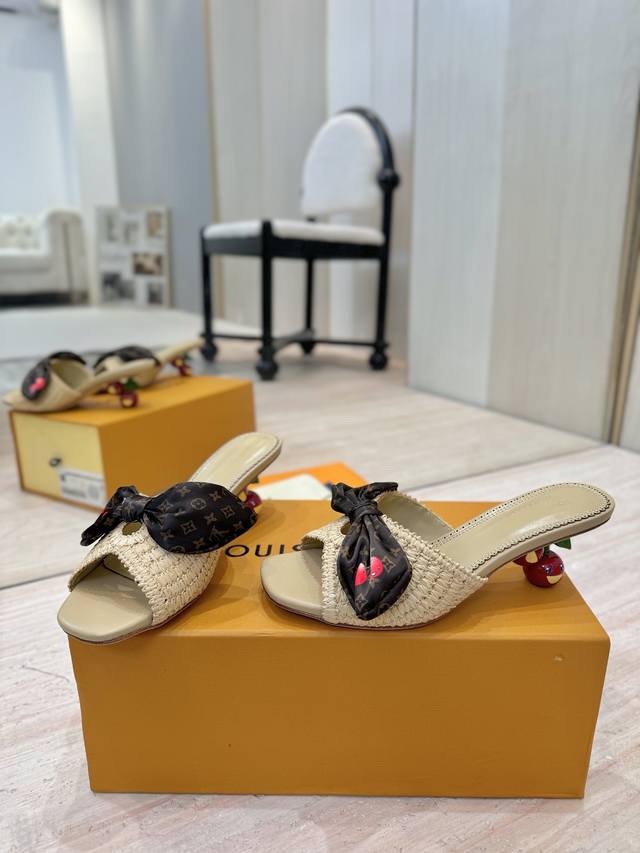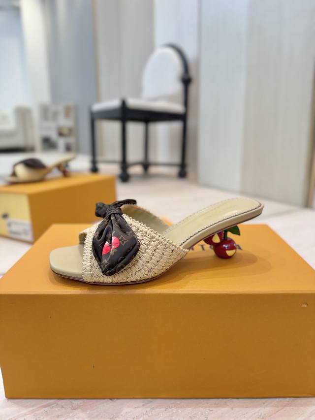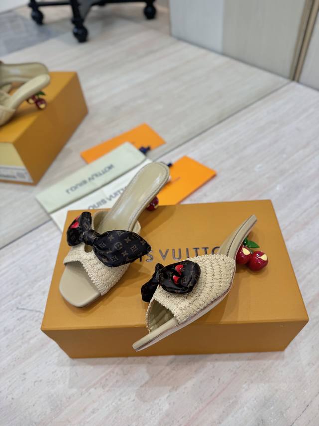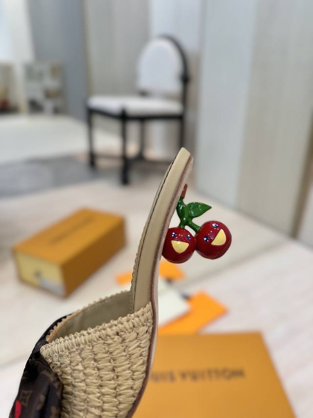 Lv村上隆联名款樱桃跟凉鞋拖鞋2025 早春新款 原版一致 硬货上新高级感十足!国内外博主刷爆的一款,复古又时髦 上脚美炸了!官网小红书主推款