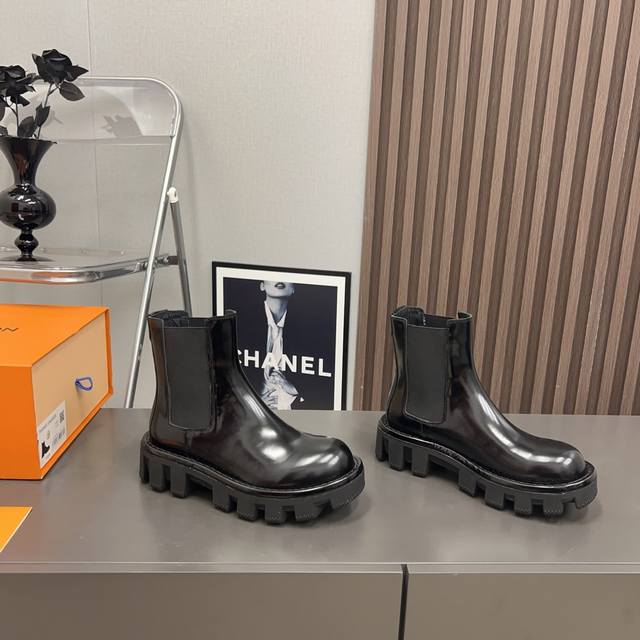 出厂:情侣 L*V驴家 Vs秋冬最新款短靴系列 情侣厚底松紧短靴 重工打造,法国代购原版回来,历经数月全部私模打造,确保所有用料、材质、制作工艺与原版一致! 面料:原版定制牛皮 内里:原版定制羊皮 垫脚:原版定制羊皮 大底:原版开模防滑大底 底厚:6Cm 码数:35-44 女40.男45定制不退换 包装:原版全套包装 颜色:官网同步更新