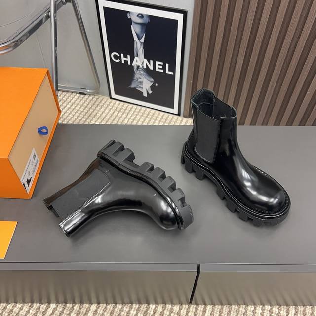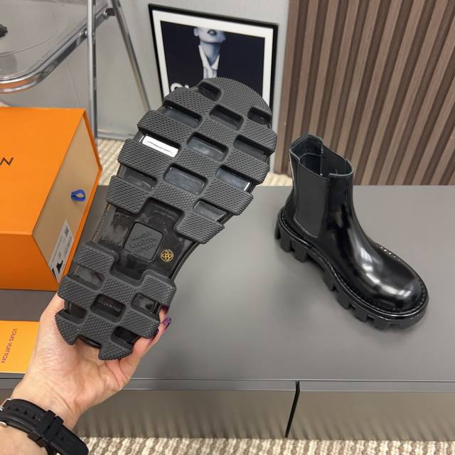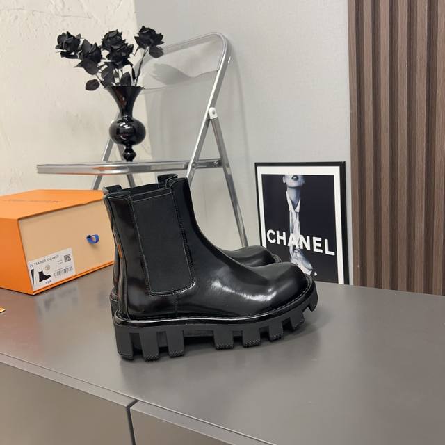 / 出厂:情侣 L*V驴家 Vs秋冬最新款短靴系列 情侣厚底松紧短靴 重工打造,法国代购原版回来,历经数月全部私模打造,确保所有用料、材质、制作工艺与原版一致! 面