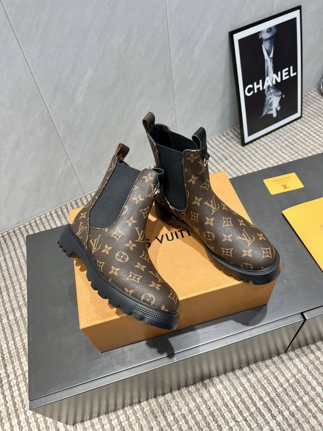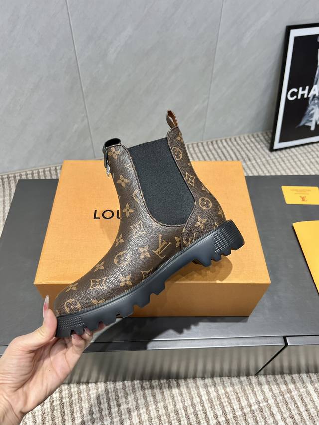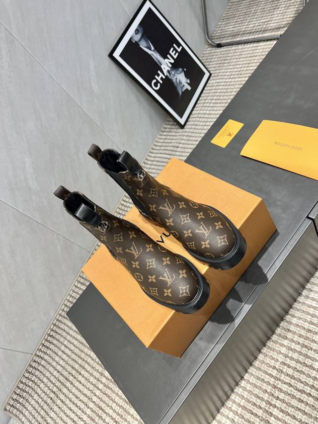 出厂: 独家顶级版本 DDD L*V驴家2025Vs早秋最新爆款靴子系列 DDD 圆头松紧短靴 DDD 重工打造,法国代购原版回来,历经数月全部私模打造,确保所有用料、材质、制作工艺与原版一致! DDD 面料:原版定制老花皮料 DDD 内里:原版定制羊皮 DDD 垫脚:原版定制羊皮 DDD 大底:原版开模轻泡成型底 DDD 底厚:3.5Cm DDD 码数:35-39 40.41.42定制不退换 DDD 包装:原版全套包装 DDD 颜色:官网同步更新 DDD