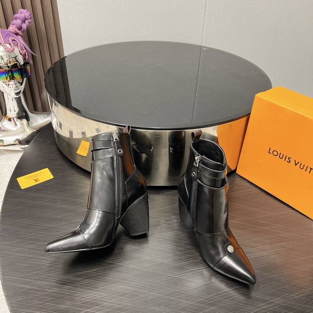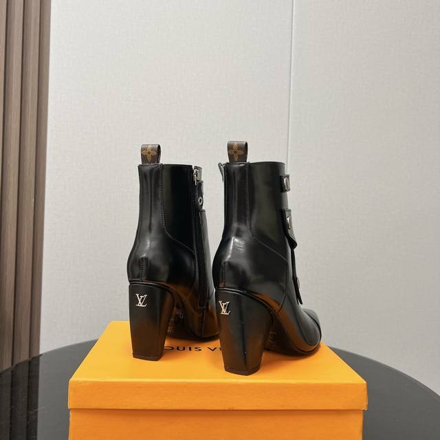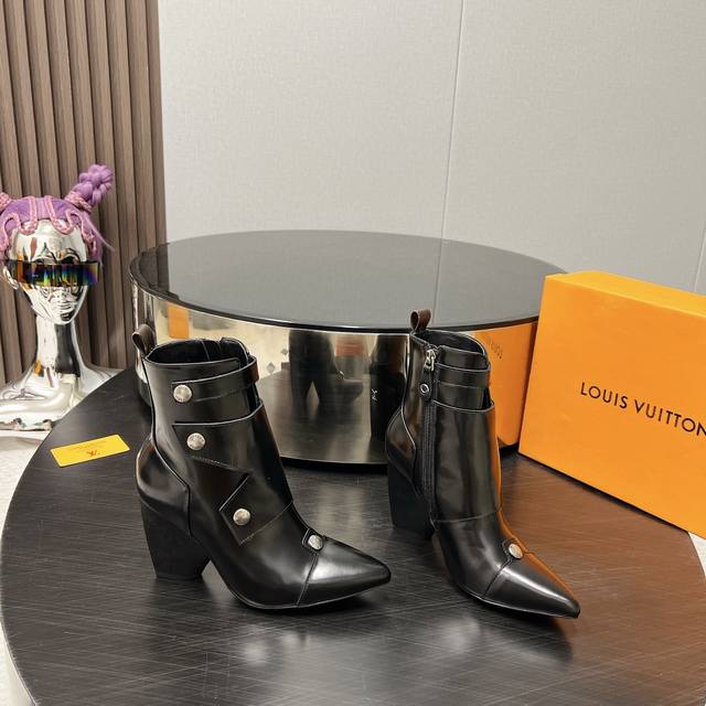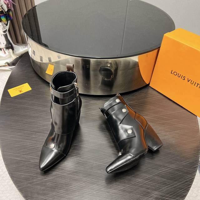 出厂: 真皮底120 独家顶级版本 Lv2025Vs秋冬新款时装靴系列 尖头粗跟短靴 Silhouette 踝靴在本季以超柔软小牛皮重新演绎 系在领口上的条带赋予其极具女人味的触感,标志性的 Monogram 花形鞋跟是该系列的特色 也覆盖在品牌的标志性 - Material 材质 - 面料:进口开边珠 内里:进口羊皮 垫脚:进口羊皮 大底:进口意大利真皮底 跟高:8.5Cm 包装:原版全套包装 码数:35-39 40.41.42定制不退换 颜色:官网同步更新