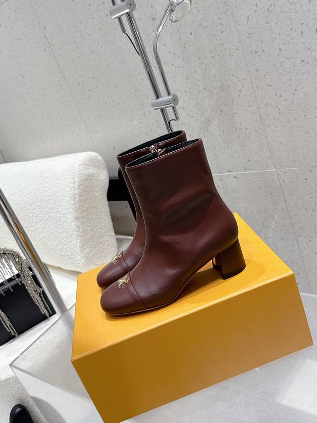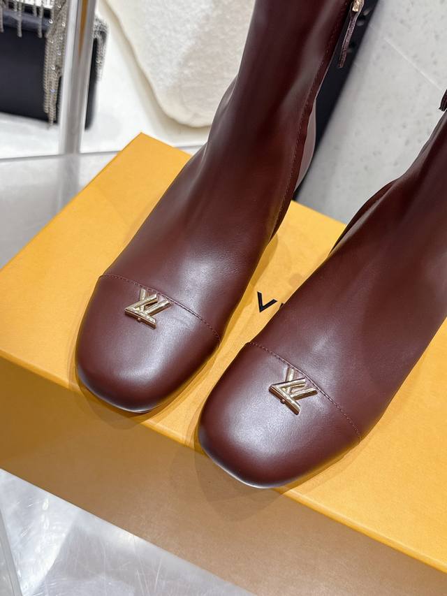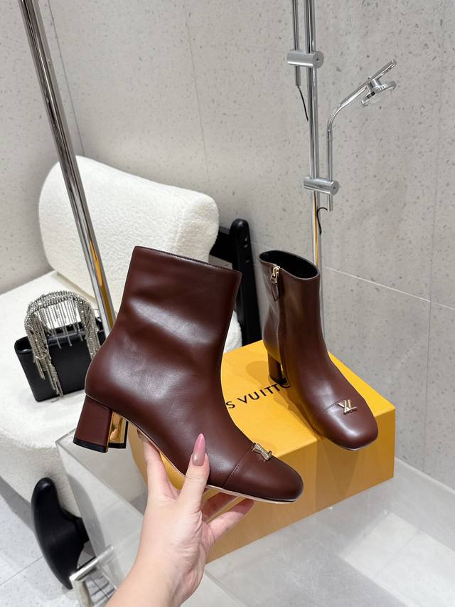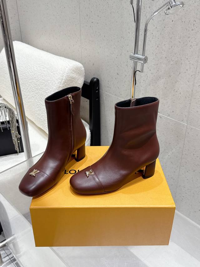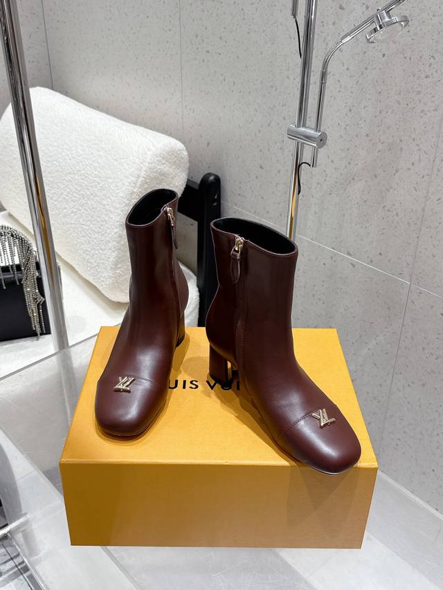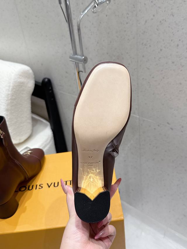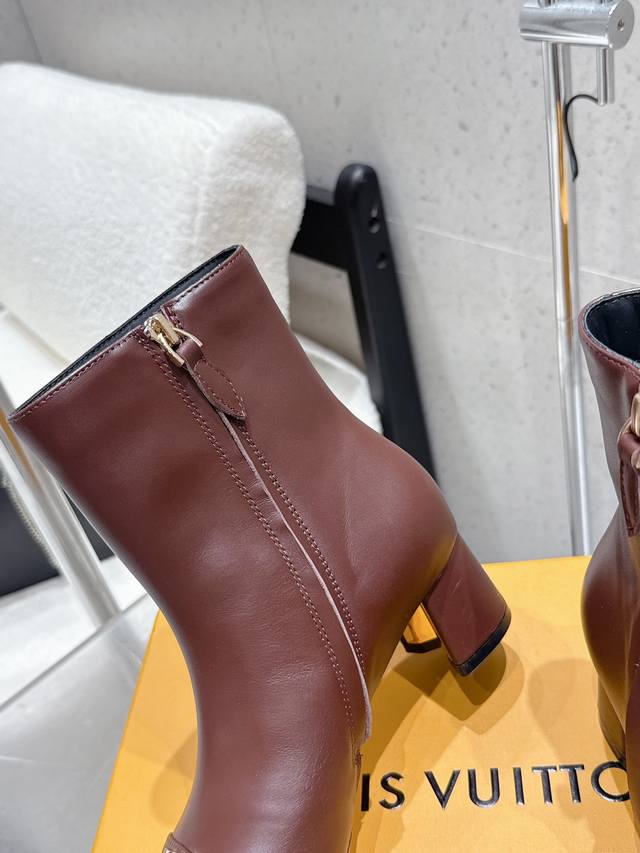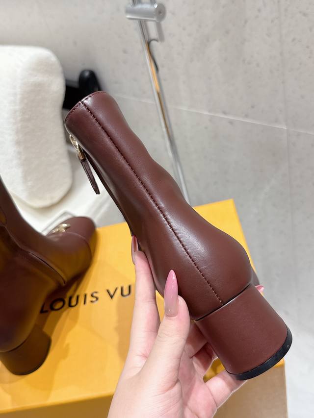 出厂 Louis Vuitton 25Ss秋冬新款 Lv圆头高跟侧拉链短靴 裸靴 鞋面:小牛皮 内里垫脚:羊皮 鞋底:意大利真皮大底 跟高:5.5Cm 码数:3