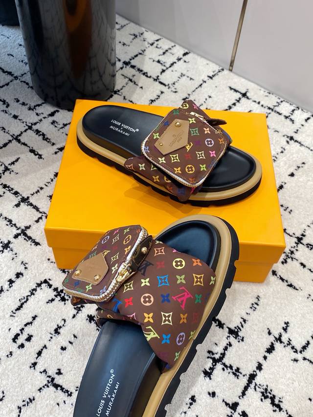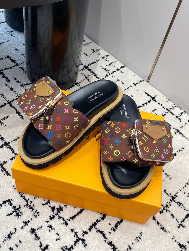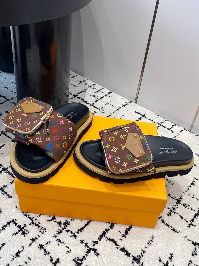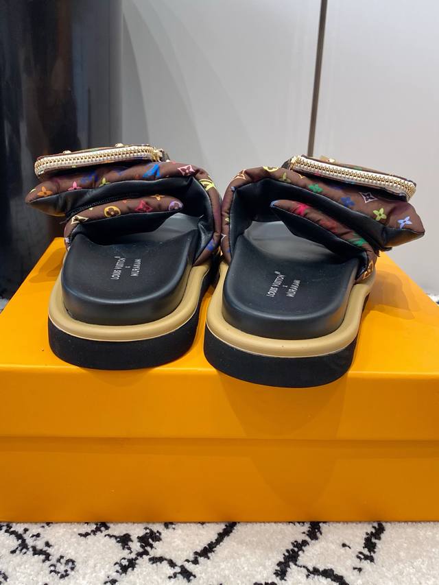 出厂 ,Lv路易威登2025新款魔术贴面包拖鞋,专柜主打最新款驴牌拖鞋口袋款代购级别!高级感十足!国内外博主刷爆的一款,复古又时髦,上脚美炸了!官网主推款!