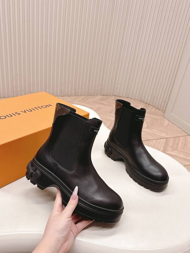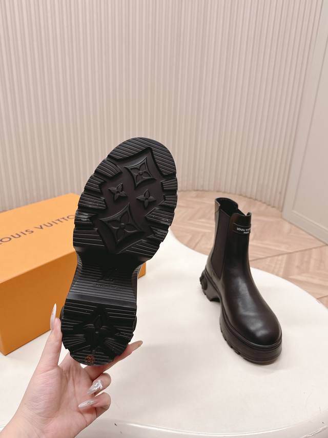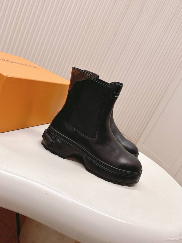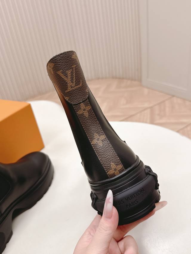 出 Lv驴牌 25Ss 新款秋冬马丁靴短靴 楦型百搭瘦脚Yyds.造型立体饱满,帅气十足 上脚舒适 非常复古风、气场十足,原版老花设计风格非常经典 细节完美 酷