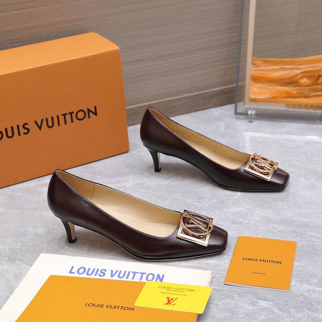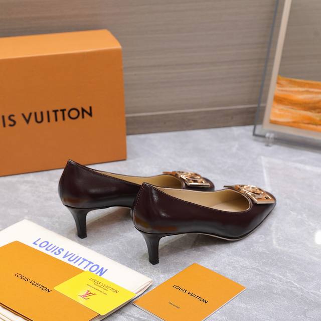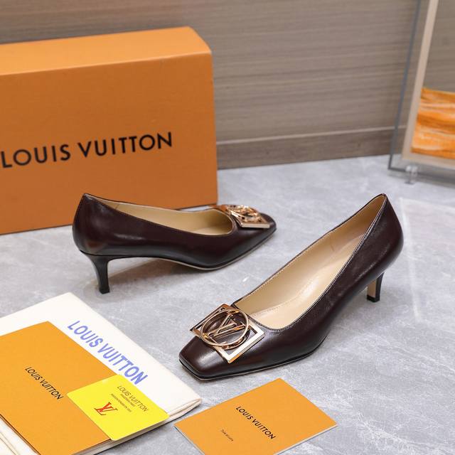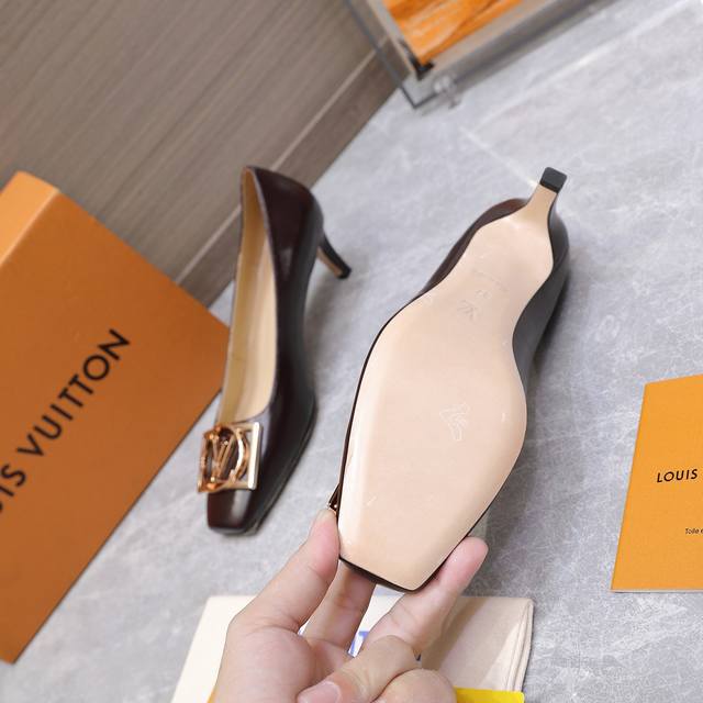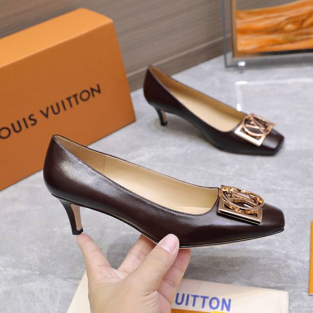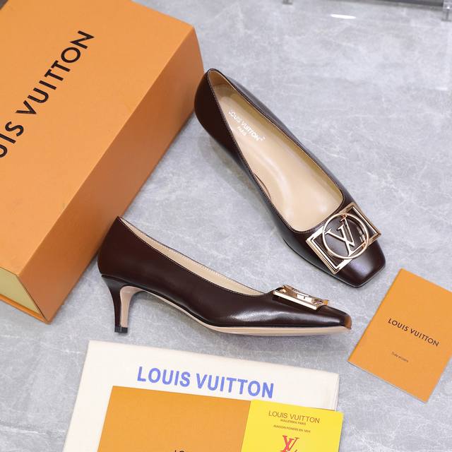 厂价 驴牌25Wf秋冬新品方扣方头 高跟鞋单鞋 当Lv的硬箱基因邂逅现代鞋履美学 方扣方头高跟鞋单鞋以凝练线条 将品牌百年底蕴化作步履间的从容气场 仅以标志性设