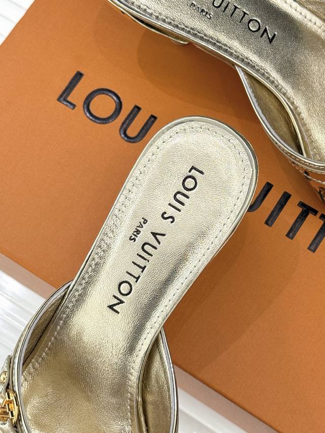 顶级版本 #路易威登春夏新品老花色 丹宁牛仔系列平跟凉鞋 小猫跟拖 复古上脚又好看 特定牛仔布材质 羊皮内里 真皮大底...