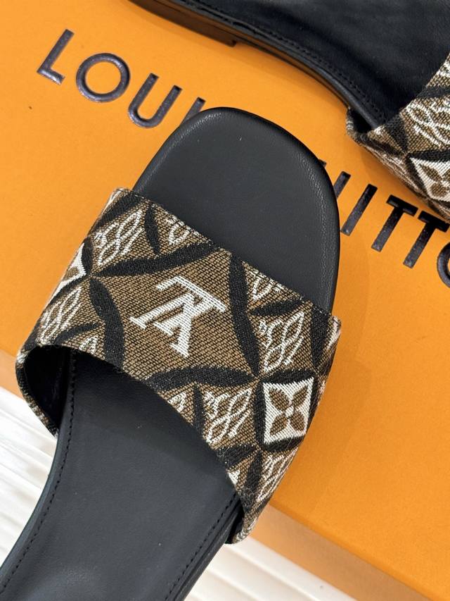 FFF 厂价 DDD L*V驴牌经典爆款印花平底拖鞋 DDD 以标志性Monogram老花为灵魂 DDD 糅合法式优雅与当代松弛感 DDD 以Lv专属视觉符号定义高阶休闲 DDD 平底设计承载全天候舒适 DDD 经典印花彰显身份格调 DDD 既是假日出行的吸睛利器 DDD 亦是日常造型的奢华注脚 DDD 让艺术与生活的优雅共鸣 DDD 是刻在步履间的奢雅印记。 DDD 无论是搭配简约的白色T恤和蓝色牛仔裤 DDD 营造出随性的休闲风 DDD 还是配上飘逸的连衣裙 DDD 出席一场浪漫的海边晚宴 DDD 它