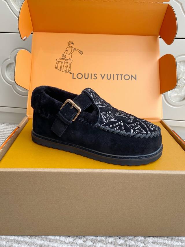 / 原版盒包装 代购级Lv驴家Colorado厚底电绣羊毛玛丽珍乐福鞋 秋冬可爱毛毛鞋,勃肯鞋型体,玛丽珍T待设计;把时髦想要的元素融为一体! 鞋面用皮条纯手工缝制