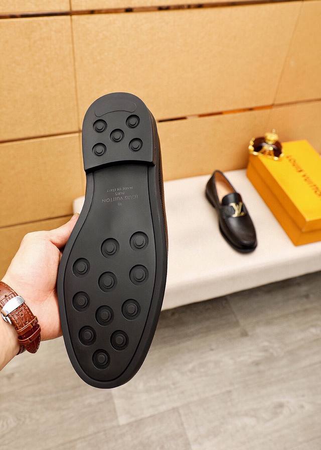 商品商标:Louis Vuitton 路易威登 休闲皮鞋 DDD 正码码数: 38-44 45订制 DDD 商品材料:精选 进口头层荔枝纹牛皮鞋面+奢华五金扣,进口头层牛皮内里。强烈立体视觉效果 原版橡胶大底 DDD 颜 色:2色可选 DDD