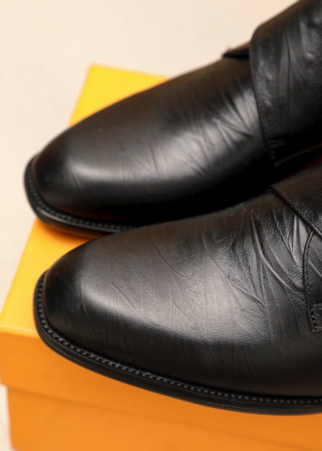 商品商标:Louis Vuitton 路易威登 商务皮鞋 正码码数: 38-44 45.46订制 商品材料:精选 进口头层小牛皮圧花鞋面+奢华五金扣,进口头层牛
