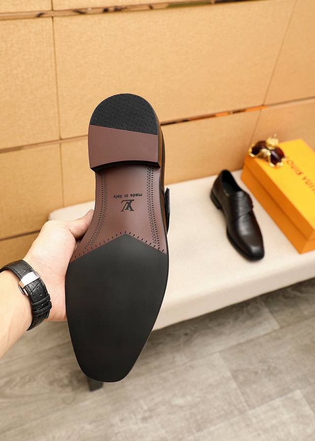 / 商品商标:Louis Vuitton 路易威登 商务皮鞋 正码码数: 38-44 45.46订制 商品材料:精选 进口头层小牛皮圧花鞋面+奢华五金扣,进口头层牛