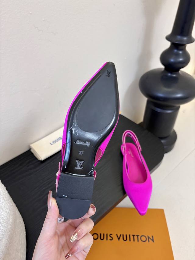 夏季新款 Louis Vuitton 路易威登 Lv Legacy 露跟高跟鞋后空凉鞋尖头猫跟高跟凉鞋 Ddd 本款 Legacy 露跟高跟鞋以光滑牛皮革延续传统构型设计,点明路易威登 春夏秀场的传承主题。柔婉尖头与小猫跟流露雅致格调, Ddd Monogram 帆布后带回溯硬箱手柄元素。内敛弹力嵌饰实现轻松穿脱。 Ddd 鞋面:真丝 Ddd 内里垫脚:羊皮 Ddd 鞋底:意大利真皮大底 Ddd 跟高:9Cm 6Cm 平底 Ddd 码数:35-41 40.41定做不退换 DDD