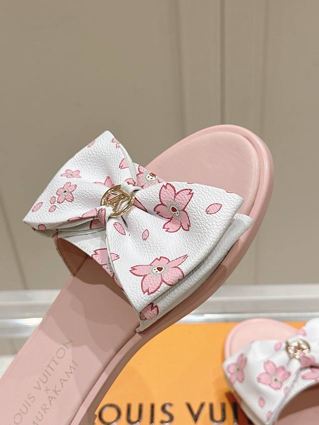 Lv X Tm 路易威登X村上隆联名6Am 系列 白三彩 平底 凉拖鞋超大蝴蝶结