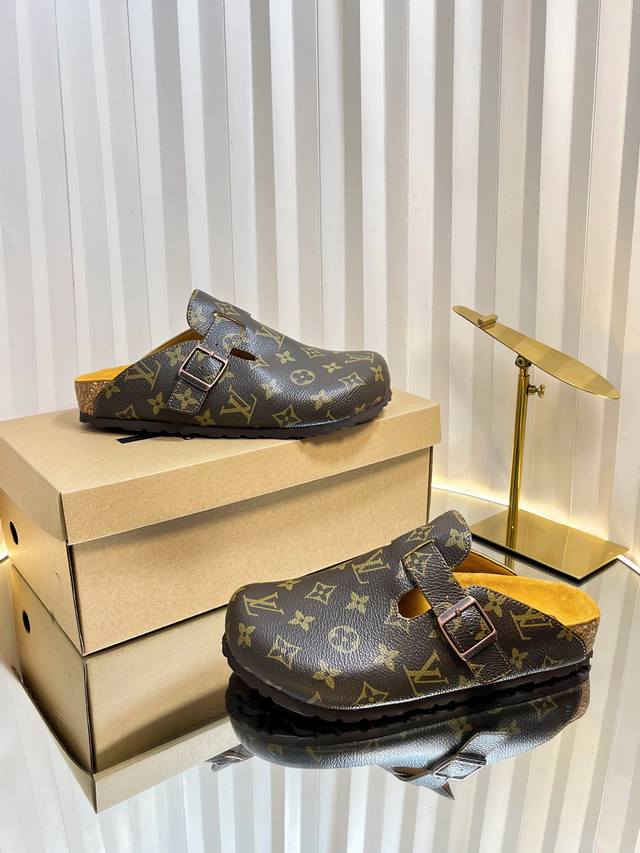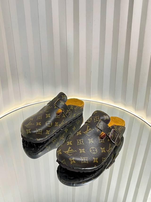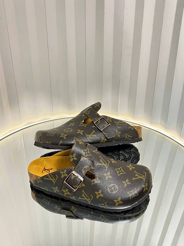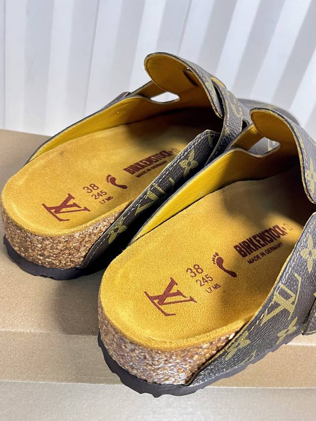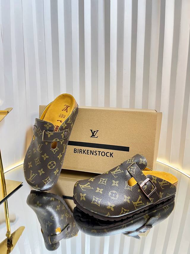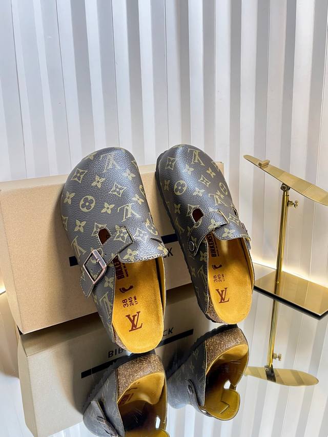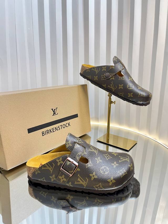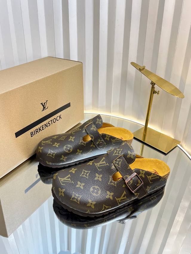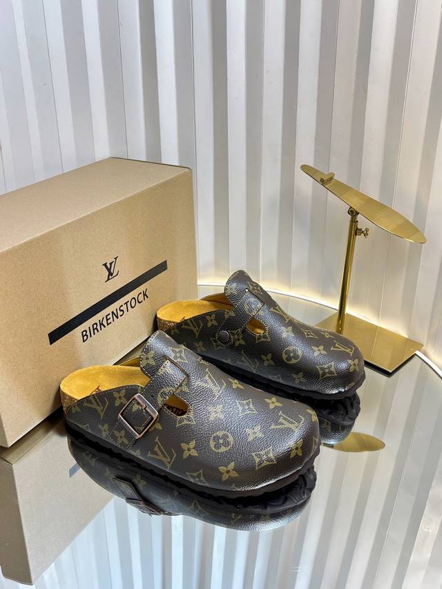 Louis Vuitton × Birkenstock联名合作款Boston包头软底拖鞋Lv 勃肯穆勒拖鞋