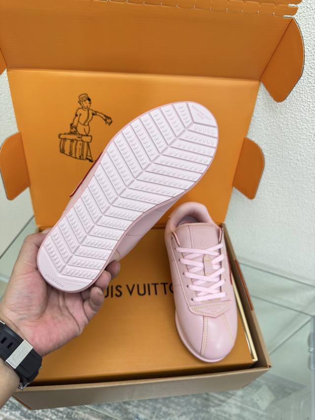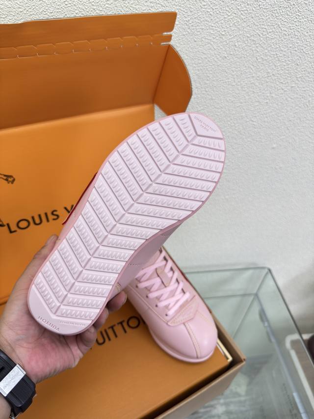 本款 Lv 运动鞋以利落简约设计重绎经典跑鞋设计。轻盈 Eva 外底成就舒弹穿着体验。