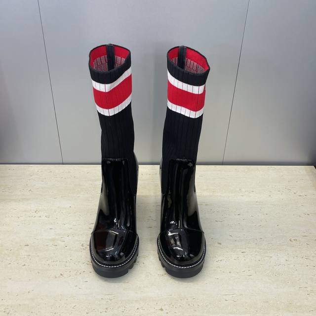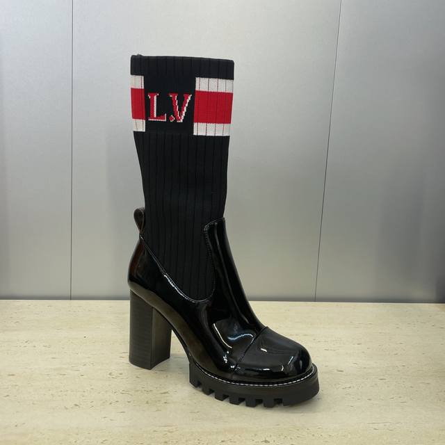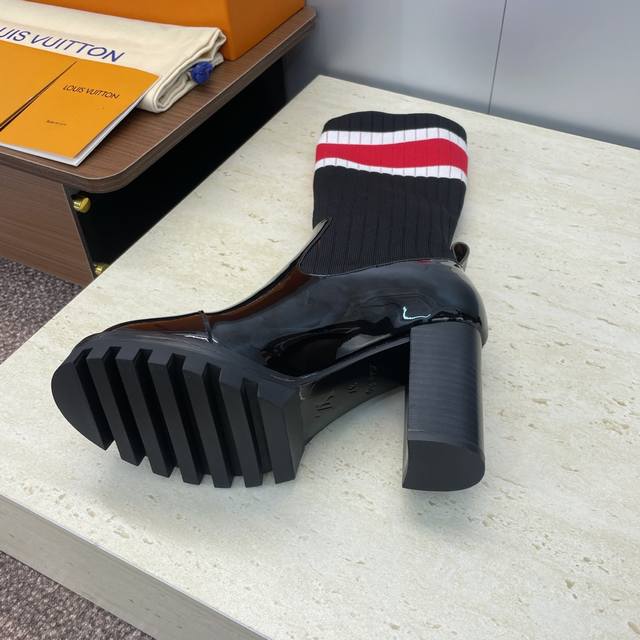 / 工厂p价p长靴 短靴 Louis Vuitton* 2025秋冬新款弹力机车过膝高筒女长靴 Lv字母Logo厚底高跟拼色一脚蹬毛线筒马丁骑士短靴 材质:鞋面进口