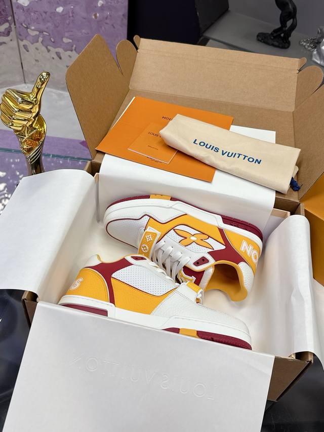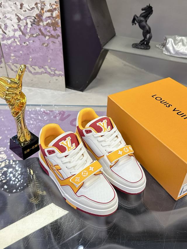 工厂p价p: DDD 顶级版本Lv新款魔术贴 情侣款 DDD Lv 路易威登L家 Trainer 25开春 新款 休闲 运动鞋 滑板鞋 DDD Lv Trainer 运动鞋的灵感源自复古篮球鞋,代表 Virgil Abloh 的标志性设计理念 展现复古篮球运动鞋的当代演绎。粒面牛皮革 后者与当季成衣系列设计遥相呼应。Monogram 花卉点缀橡胶外底,Lv 字母标注鞋舌。 DDD 面料: 原版定制头层牛皮 DDD 内里: 原版定制透气网里 DDD 大底: 双色Tpu组合大底 DDD 底厚: 3Cm DDD