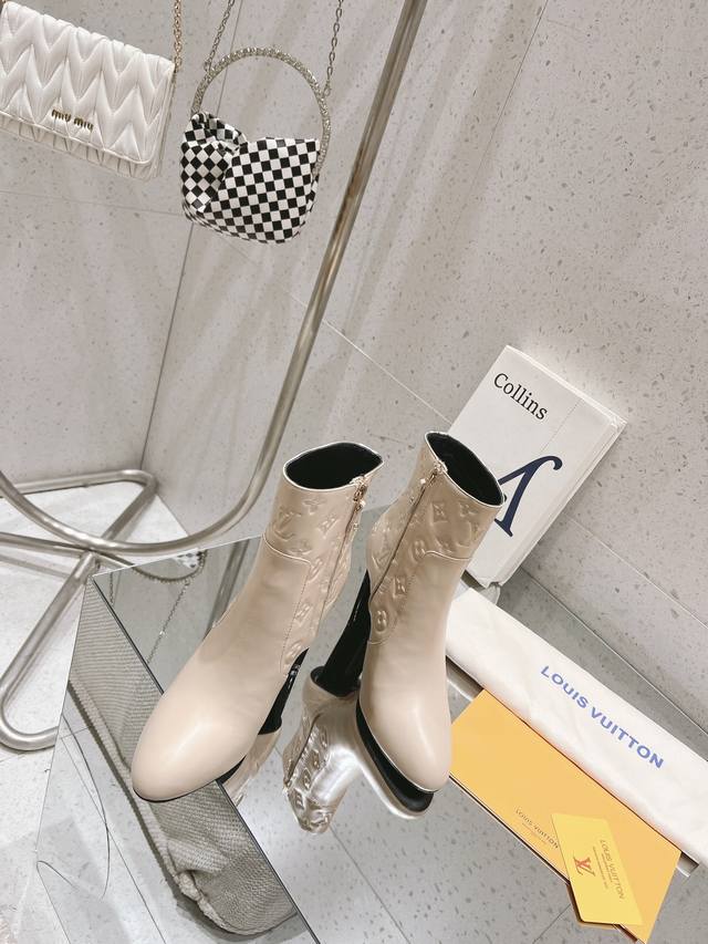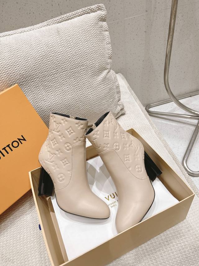 工厂p价p 顶级高版本 代购品质 原版开发Louis Vuitton 路易 威登 Ss新款Silhouette女士高跟压印花短靴。Lv新款抢手梅花高跟短靴子爆款,Ins&小红书巨多网红明星上身!上脚超性感!真的太美了!有理由刮起时尚大风,让人沦陷的舒适感 厚重而不累脚,原版定制面料 对比市场最高版本。这款小圆头压印花鞋面超有高级感!高级穿着又仙女 简约时髦又有设计感 而且都非常非常好穿,特别是楦型调制到最佳弧度,走一天也不会累,实用又有质感,特别适合上班一族 原版开模定制颜色鞋型鞋底一摸一样 值得一提的是