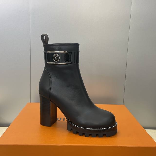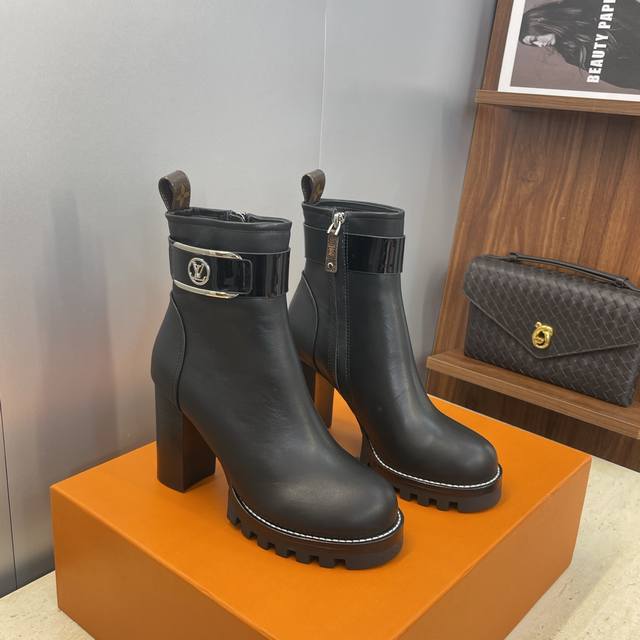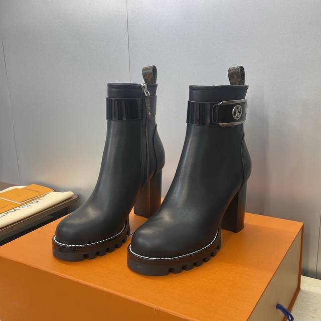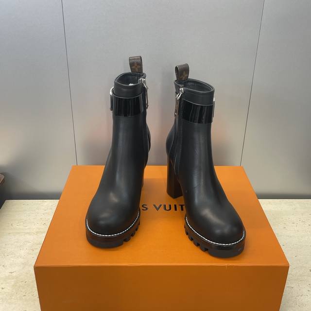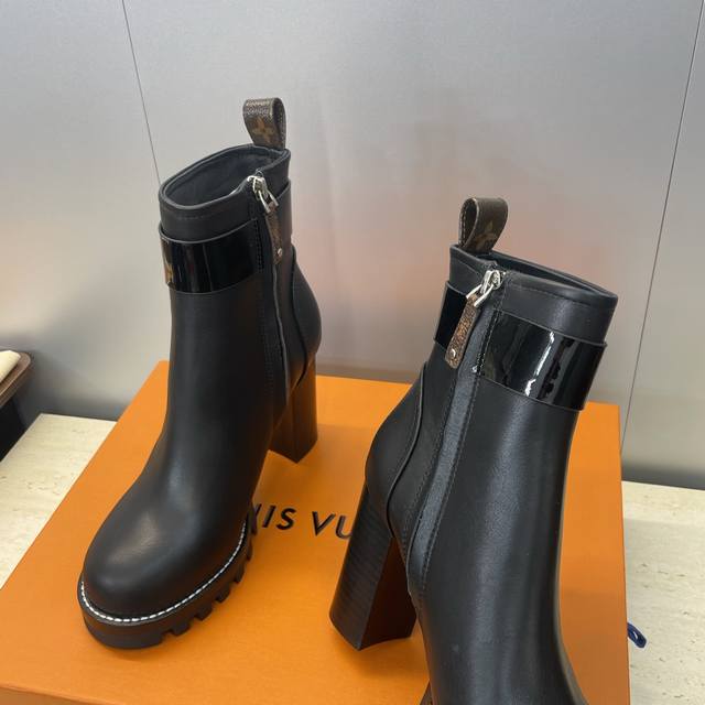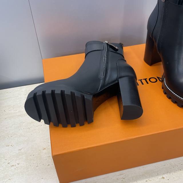 / 工厂p价p Louis Vuitton* 2025秋冬新款侧拉链机车短靴 Lv字母Logo五金扣厚底高跟拼色马丁骑士靴 材质:鞋面进口小牛皮+水染牛皮内里+原版
