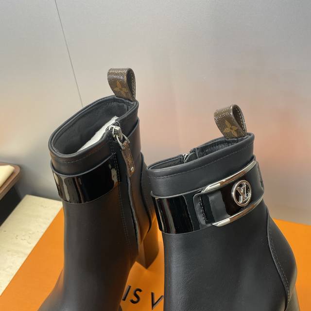 工厂p价p Louis Vuitton* 2025秋冬新款侧拉链机车短靴 Lv字母Logo五金扣厚底高跟拼色马丁骑士靴 材质:鞋面进口小牛皮+水染牛皮内里+原版