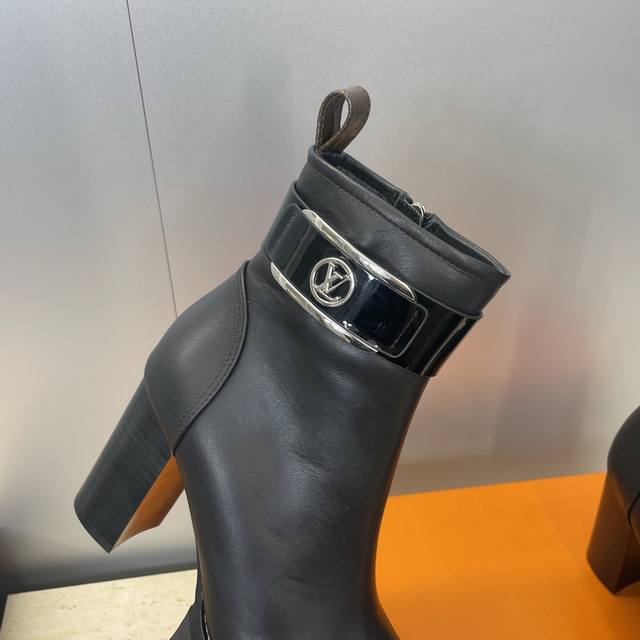 工厂p价p DDD Louis Vuitton* 2025秋冬新款侧拉链机车短靴 Lv字母Logo五金扣厚底高跟拼色马丁骑士靴 DDD 材质:鞋面进口小牛皮+水染牛皮内里+原版开模真皮沿条组合大底 DDD 跟高:10.5Cm DDD Size:女码35-42 42定制不退换 DDD