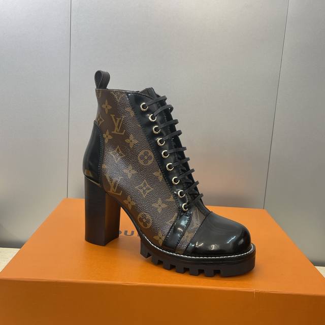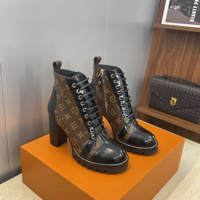 工厂p价p DDD Louis Vuitton* 2025秋冬新款侧拉链机车短靴 Lv字母Logo厚底高跟拼色马丁骑士靴 DDD 材质:鞋面进口小牛皮 进口开边珠牛皮 进口老花皮+水染牛皮内里+原版开模真皮沿条组合大底 DDD 跟高:10.5Cm DDD Size:女码35-42 42定制不退换 DDD