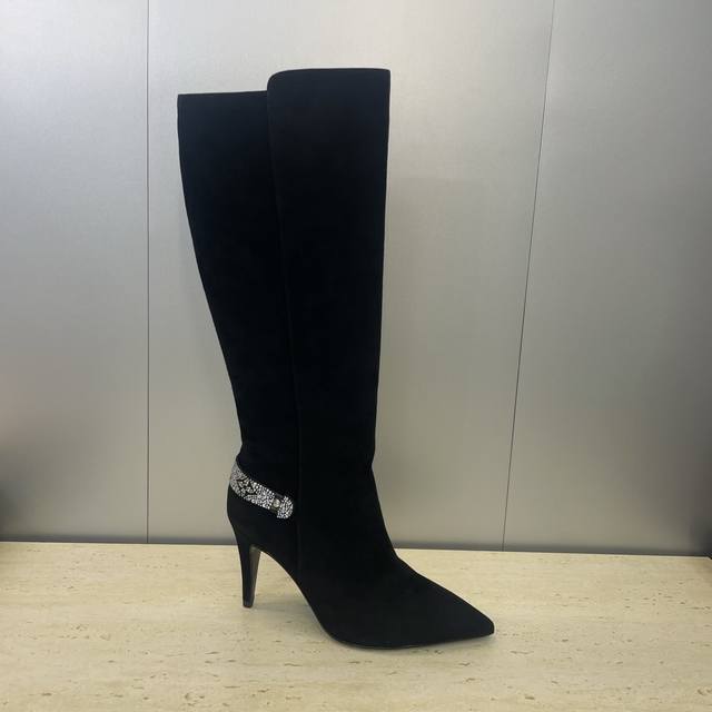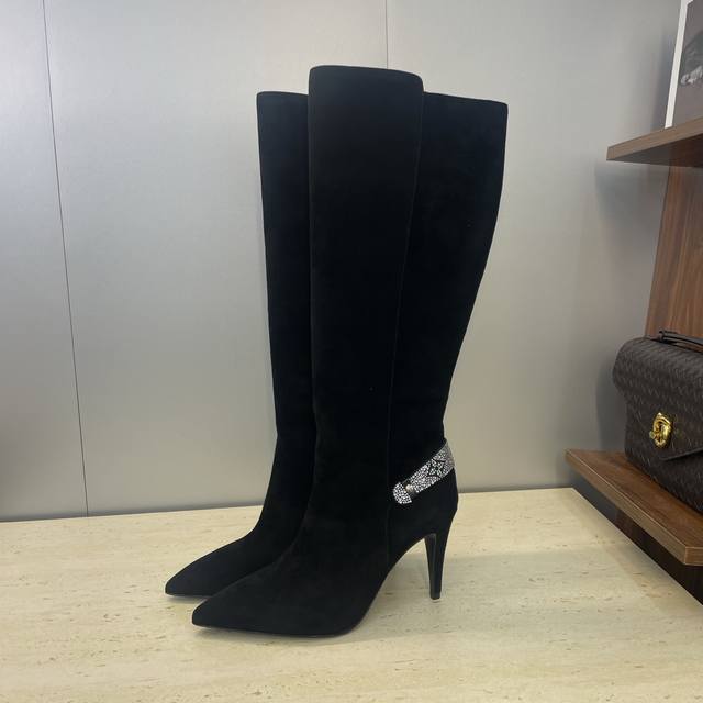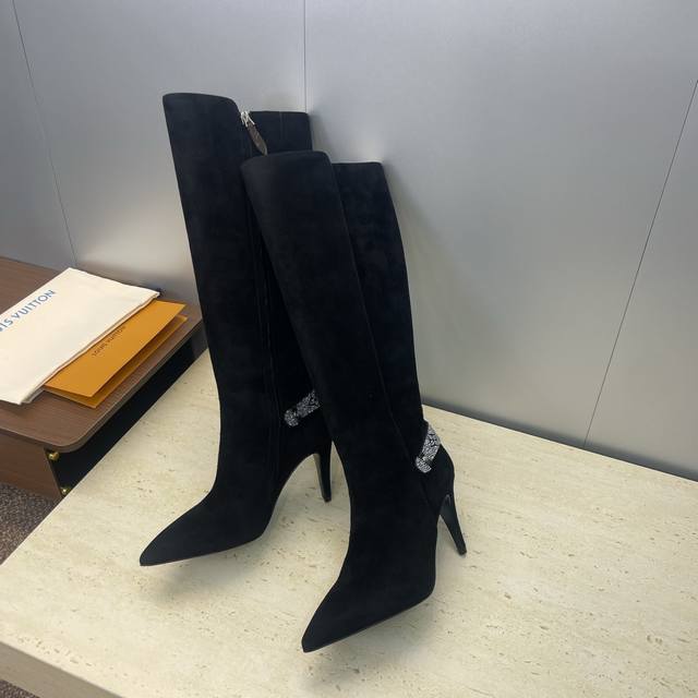/ 工厂p价p Louis Vuitton* 2025秋冬新款Legacy 侧拉链水钻机车及膝女长靴 Lv字母Logo高跟尖头拼色高筒马丁骑士靴 材质:鞋面进口小牛