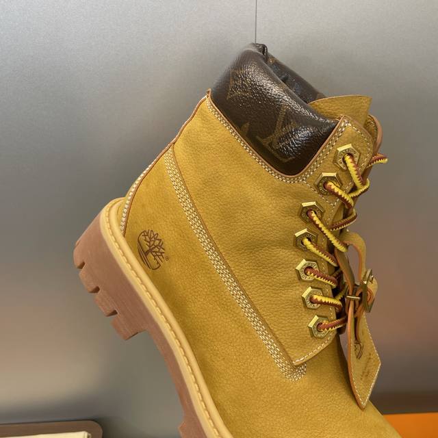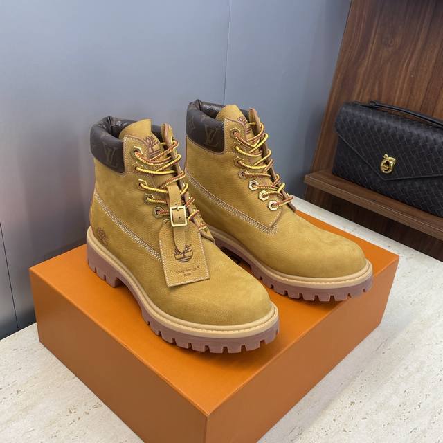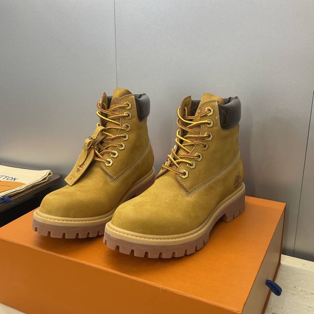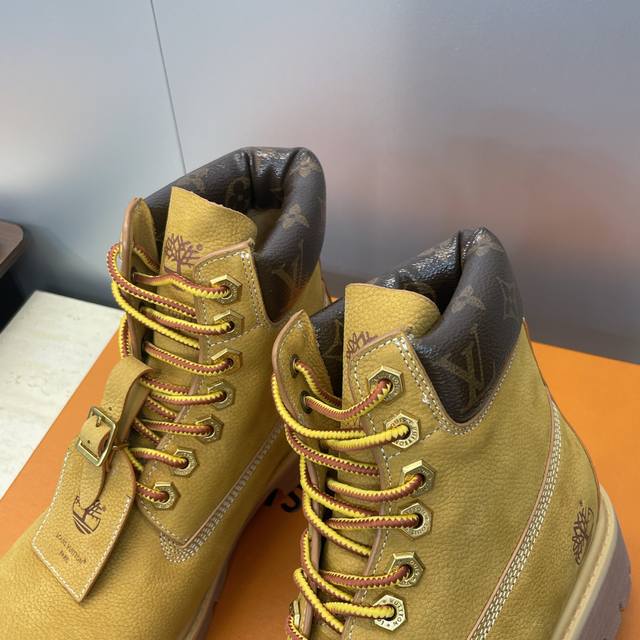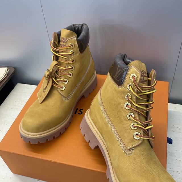 工厂p价p Louis Vuitton* X Monogram 2025秋冬联名情侣新款游牧风格系带机车及裸短靴 Lv字母Logo低跟拼色骑士登山靴 材质:鞋面