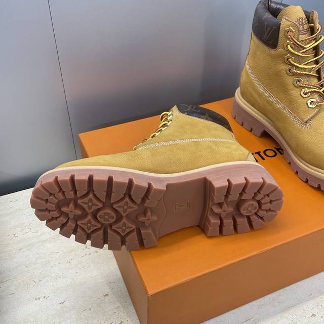 / 工厂p价p Louis Vuitton* X Monogram 2025秋冬联名情侣新款游牧风格系带机车及裸短靴 Lv字母Logo低跟拼色骑士登山靴 材质:鞋面