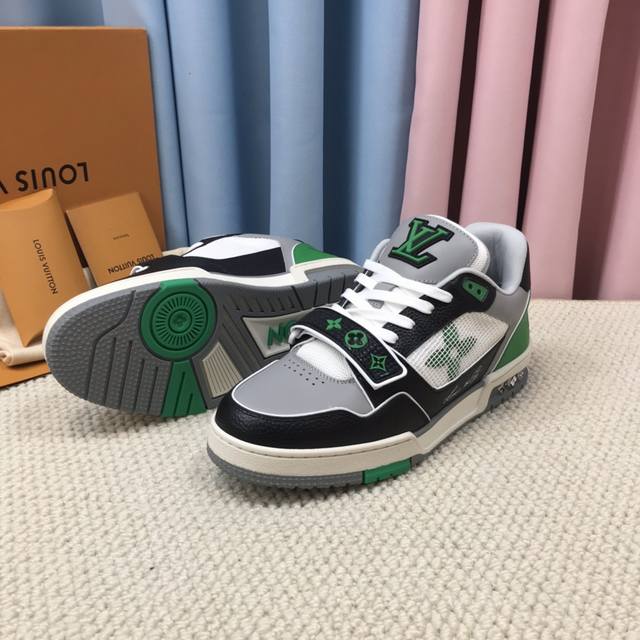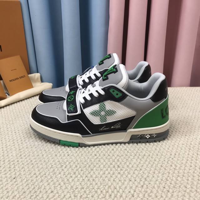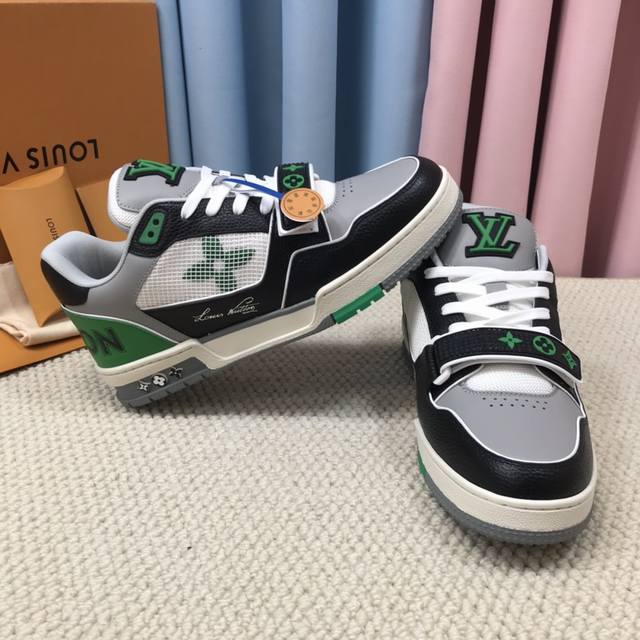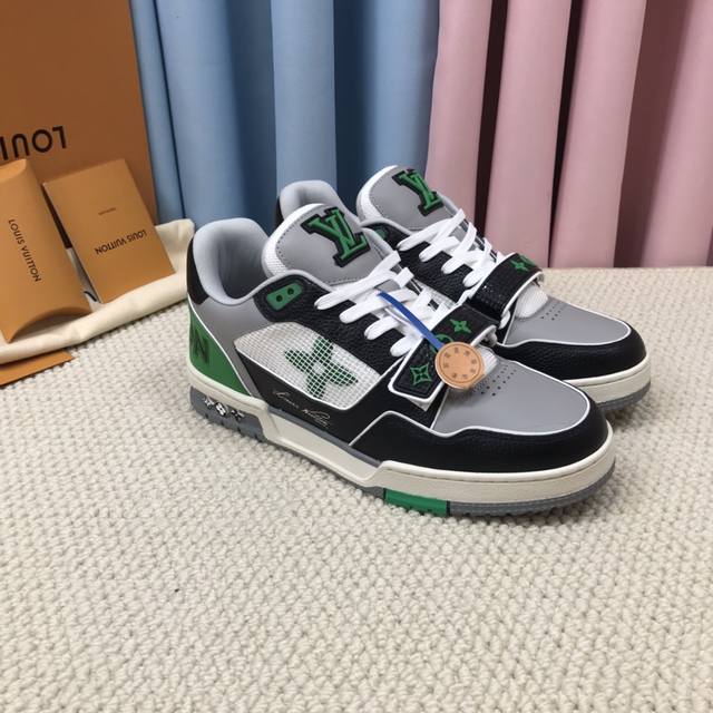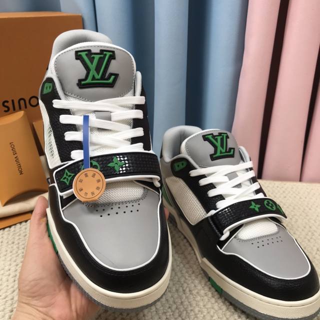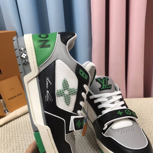 情侣款 扣子50 225 Lv代购级板鞋新色现货供应!经典驴家全系列!Lvtrainer pvc 运动鞋,...