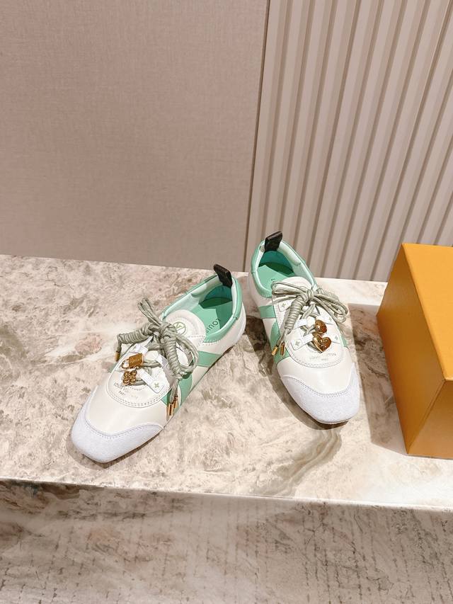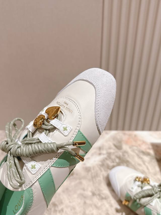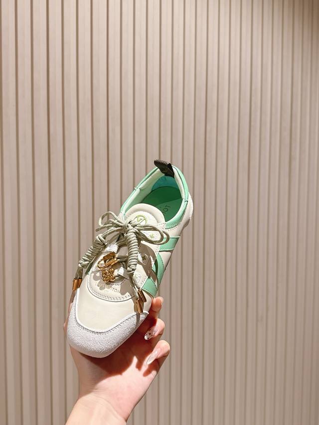 代购级别Lv路易威登专柜最新复古德训鞋;阿甘鞋;芭蕾运动鞋!众多网红明星纷纷开秀上脚炸街这款系带休闲运动鞋妥妥的美式复古风格~上脚超级好看舒适经典百搭的绝绝子单品 牛皮面料丝光牛反绒格力特亮片老花牛皮羊皮内里 垫脚