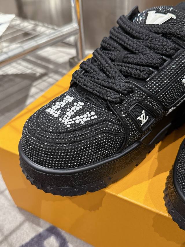 情侣款 驴牌胖丁 钻面 Trainer情侣鞋满钻限量Bulingbuling 小胖丁系列顶级复刻品质! 配色太显高级啦! 无论在自然光抑或在夜光灯下同样 光芒四射流光溢彩 日常通勤还是穿梭夜店, 都是回头率爆表的吸睛神器 穿上它你就是整条街最亮的崽。 原版定制Bing Bing私膜奢华水晶钻,采用高温烫压工艺不掉钻!套包工艺 缝合锁边,Tpu原版大底。 请注意区分市面通货材料! 好喜欢Bulingbuling感觉,实物真的好闪! 尺码35-45 [女40.41男45定做]