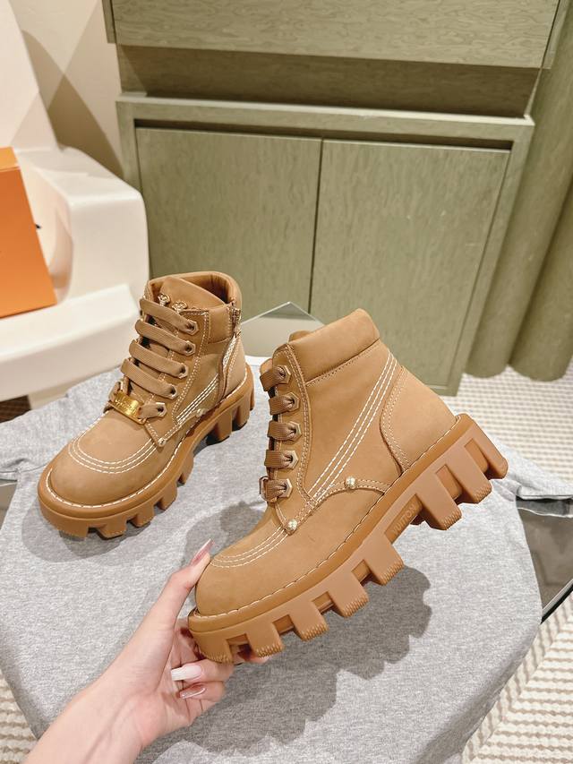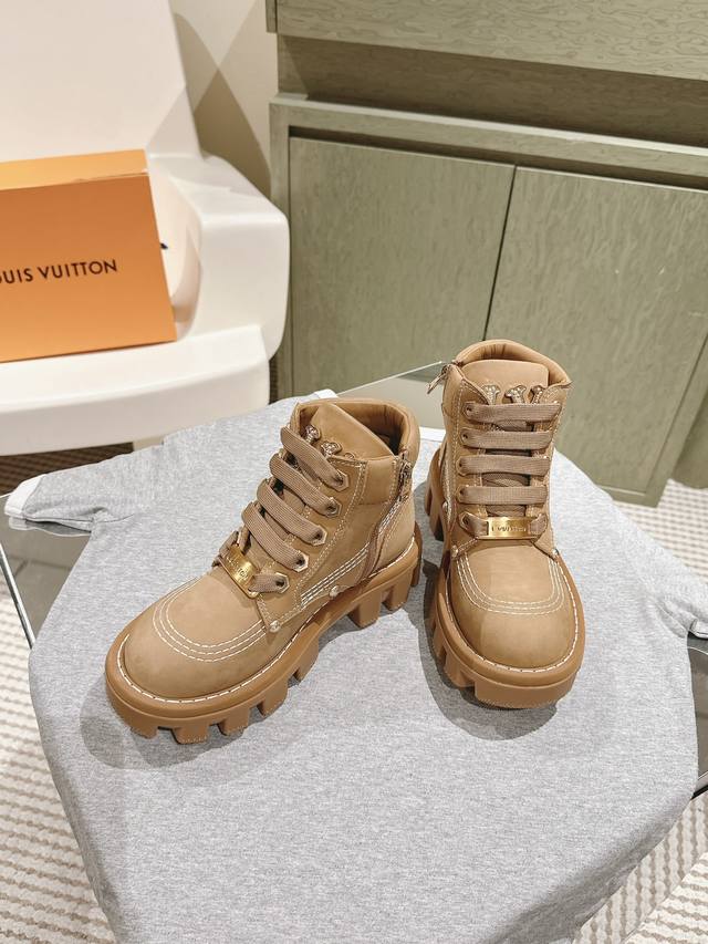 情侣款 224 顶级厚底马丁靴短款! 路易威登 Lv 专柜同步系列新款老爹鞋皮靴 潮气逼人 尽显青春活力,日常穿搭超级抢眼,经典的拱形设计,一向被称之为美腿神器