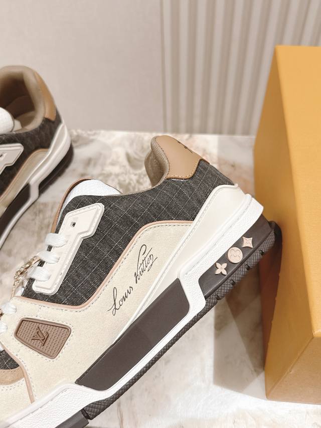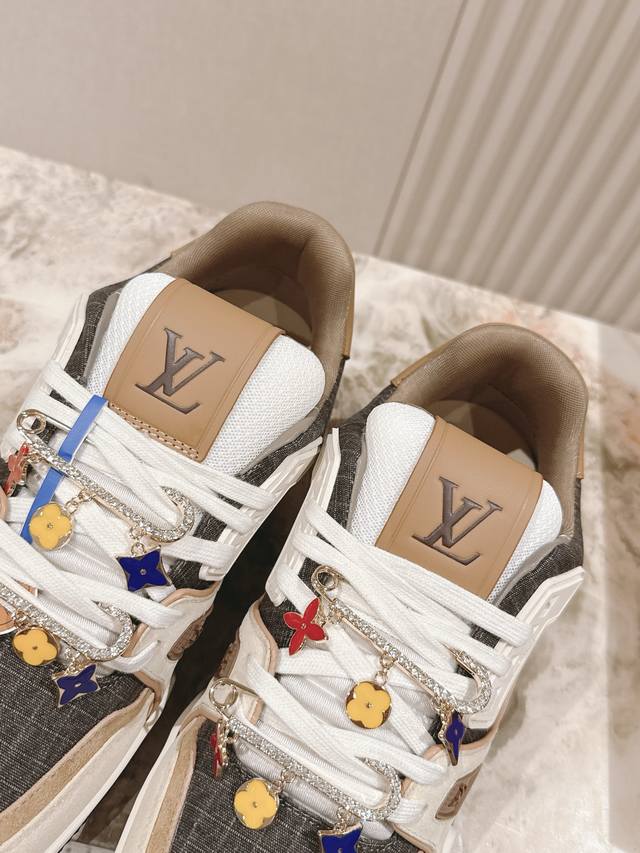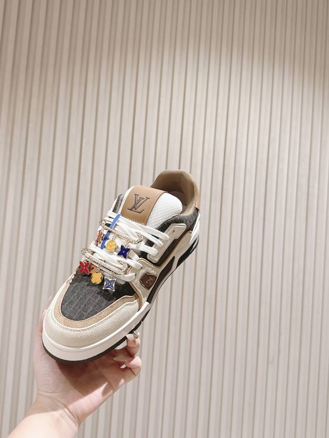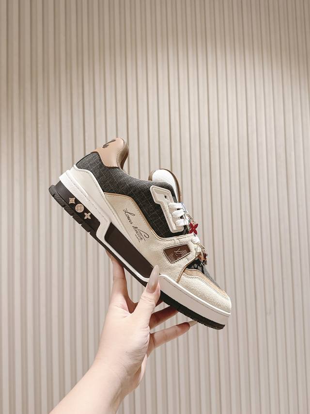 扣子50 情侣款 DDD Lv代购级新色现货供应!经典驴家全系列!Lvtrainer pvc 运动鞋, 每个款式配色都很赞!Trainer的脚感真的非常不错,惊喜满满银色不断更新,小红书网红情侣纷纷开秀! DDD 面料选用原版完全一样材质做工细节,原版一比一对比每个细节!各种皮面Tpu 布 超复杂拼接 DDD Tpu原版大底,代购级别,不是普通材质哦! DDD 码数:女35-40 男38-45 DDD 配送专柜同步全套包装! DDD