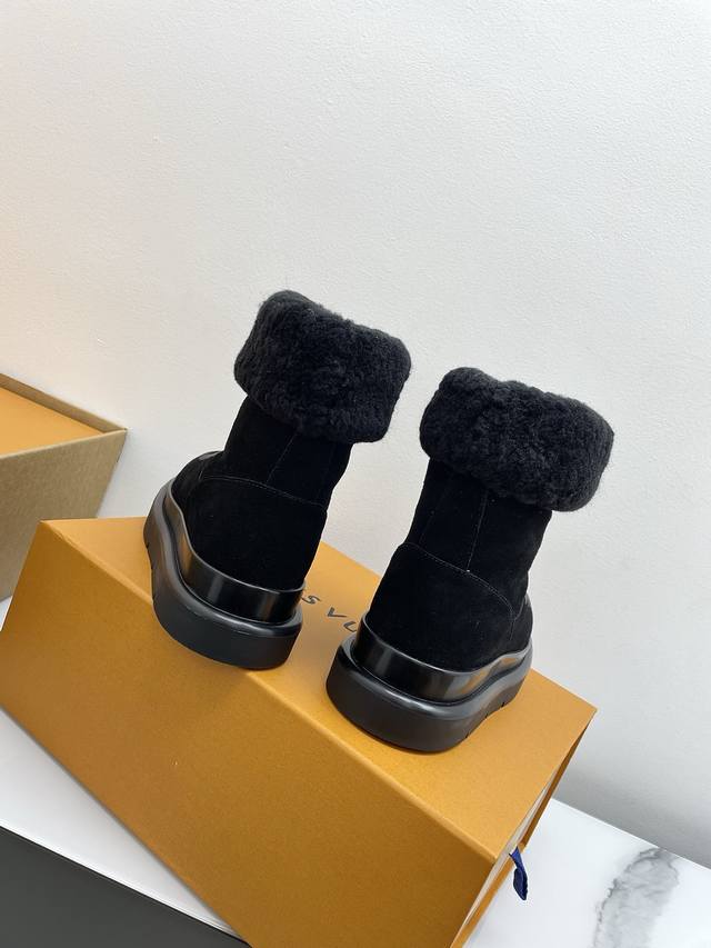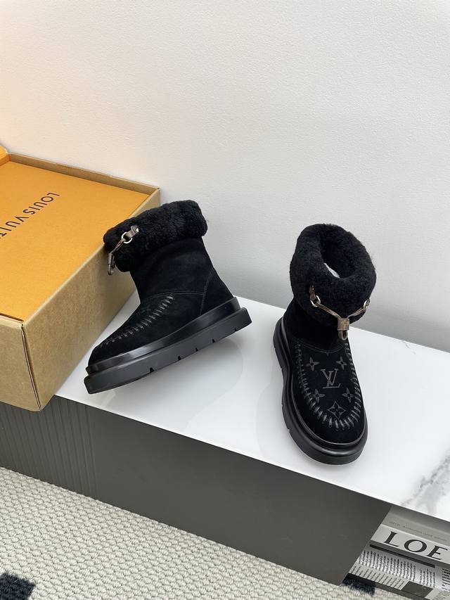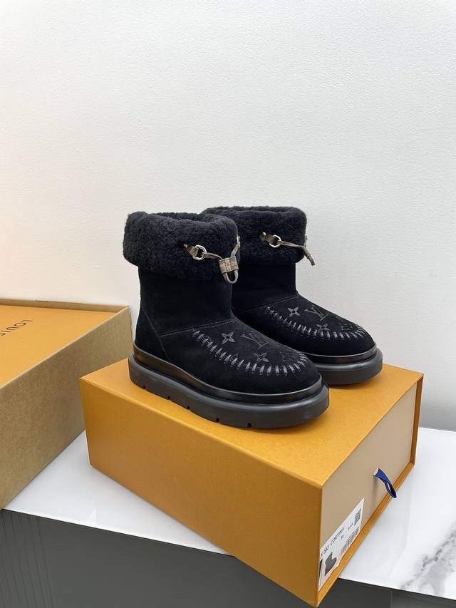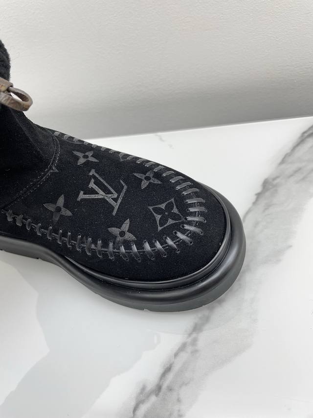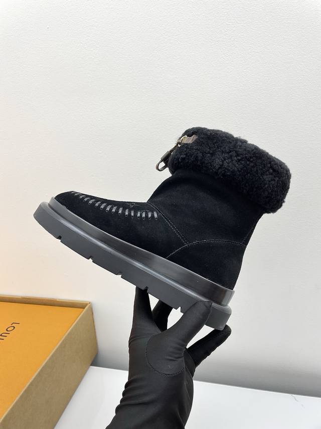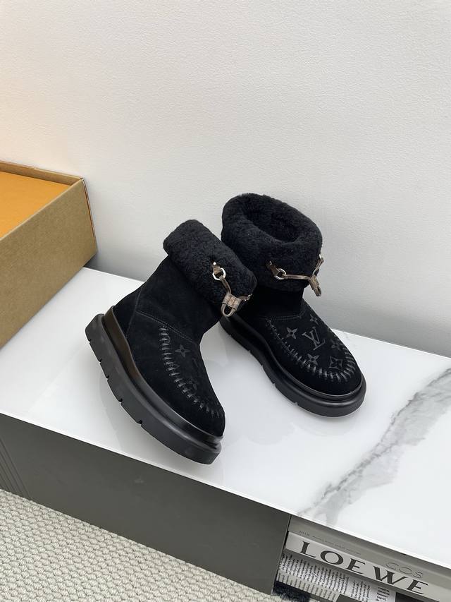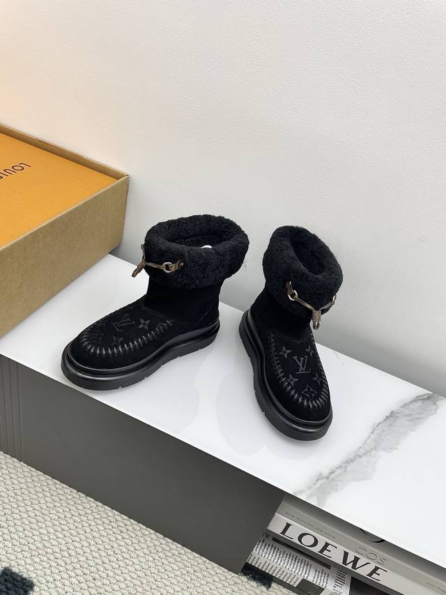 拖鞋 短靴 Lv路易威登L家 驴牌 Cortina系列 毛靴 雪地靴 短靴 DDD 本款 Cortina 闭趾凉拖出自 Lv Ski 系列,为绒面牛皮革局部压印Monogram 图案,搭配舒适羊毛皮内衬与点缀Lv Circle 标识的皮革鞋带。舒适构型可于冬日假期与都市生活间无缝切换 DDD 配送专柜精美包装 DDD 面料 : 原版定制进口头层牛皮 DDD 内里 : 进口保暖羊毛里 DDD 鞋底 : 原版开模防滑Tpu材质 DDD 底厚 :4.5Cm DDD Size : 女款35-41 40 41定做